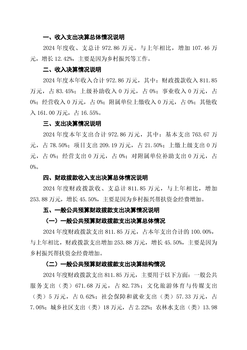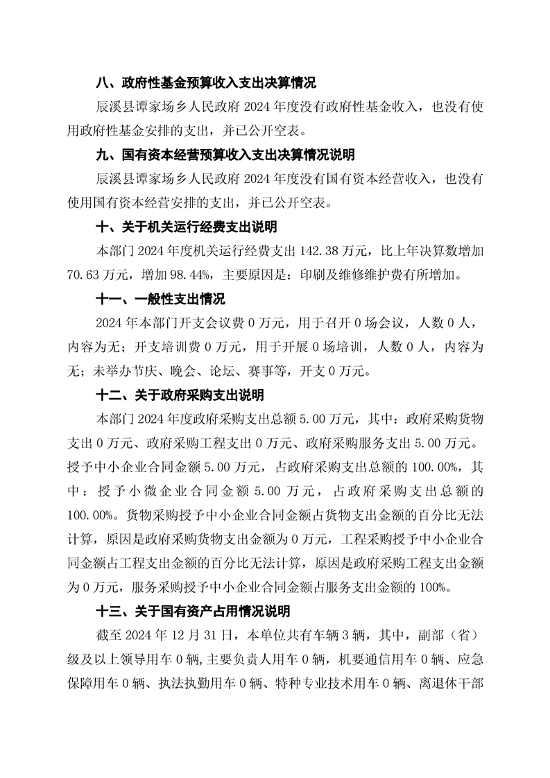 辰溪县谭家场乡人民政府2024年部门决算公开说明