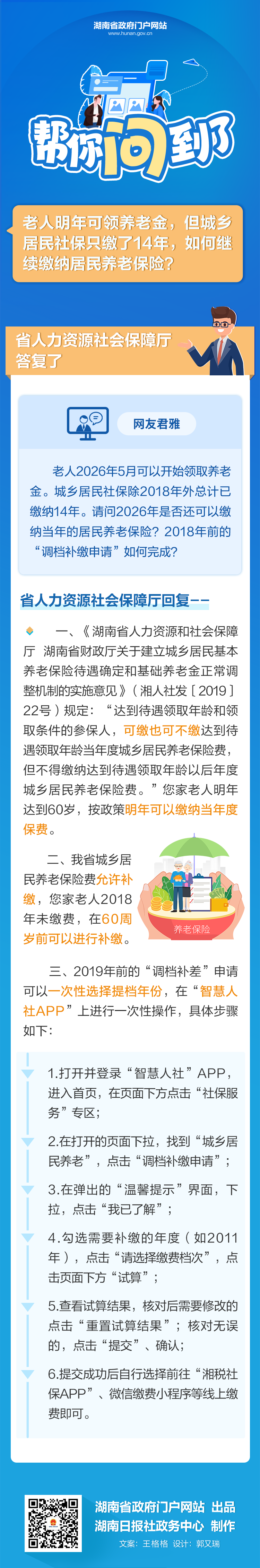 老人明年可领养老金,但城乡居民社保只缴了14年,如何继续缴纳居民养老保险?帮你问到了!