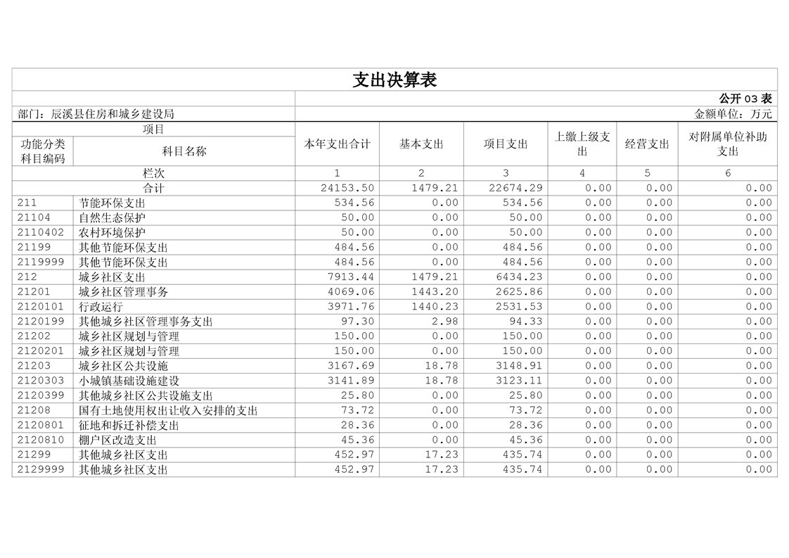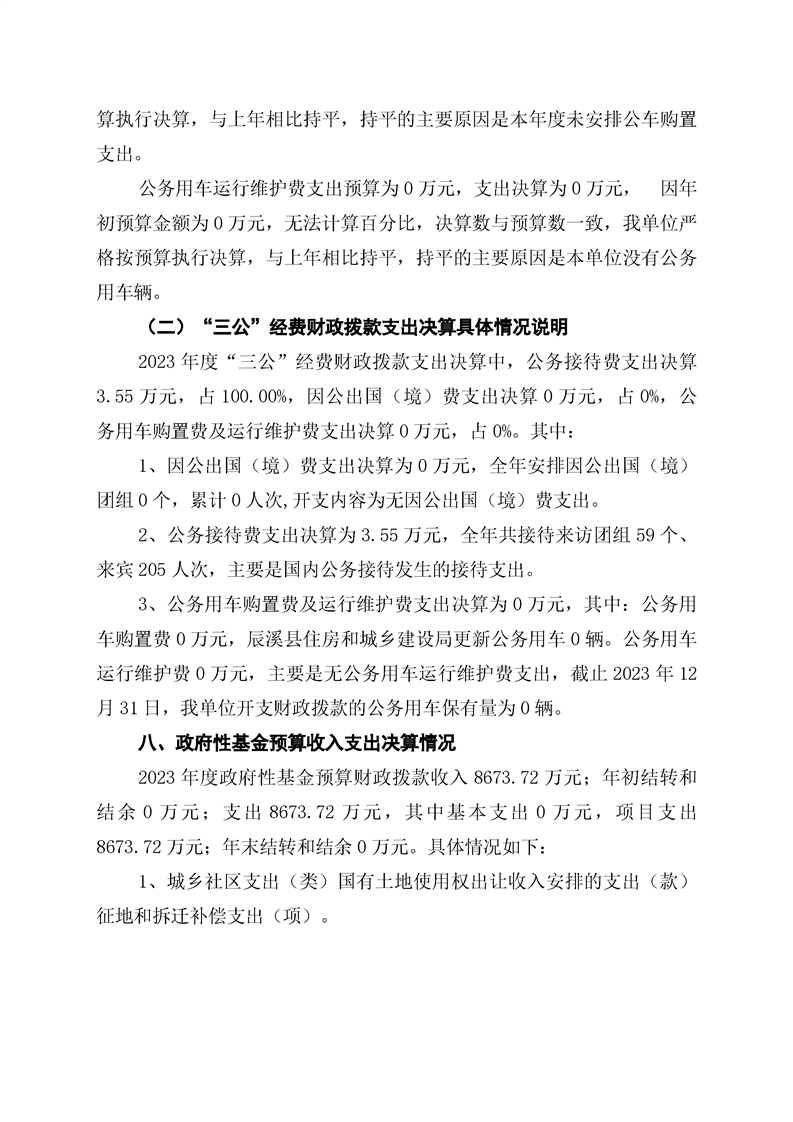 辰溪县住房和城乡建设局2023年部门决算公开说明