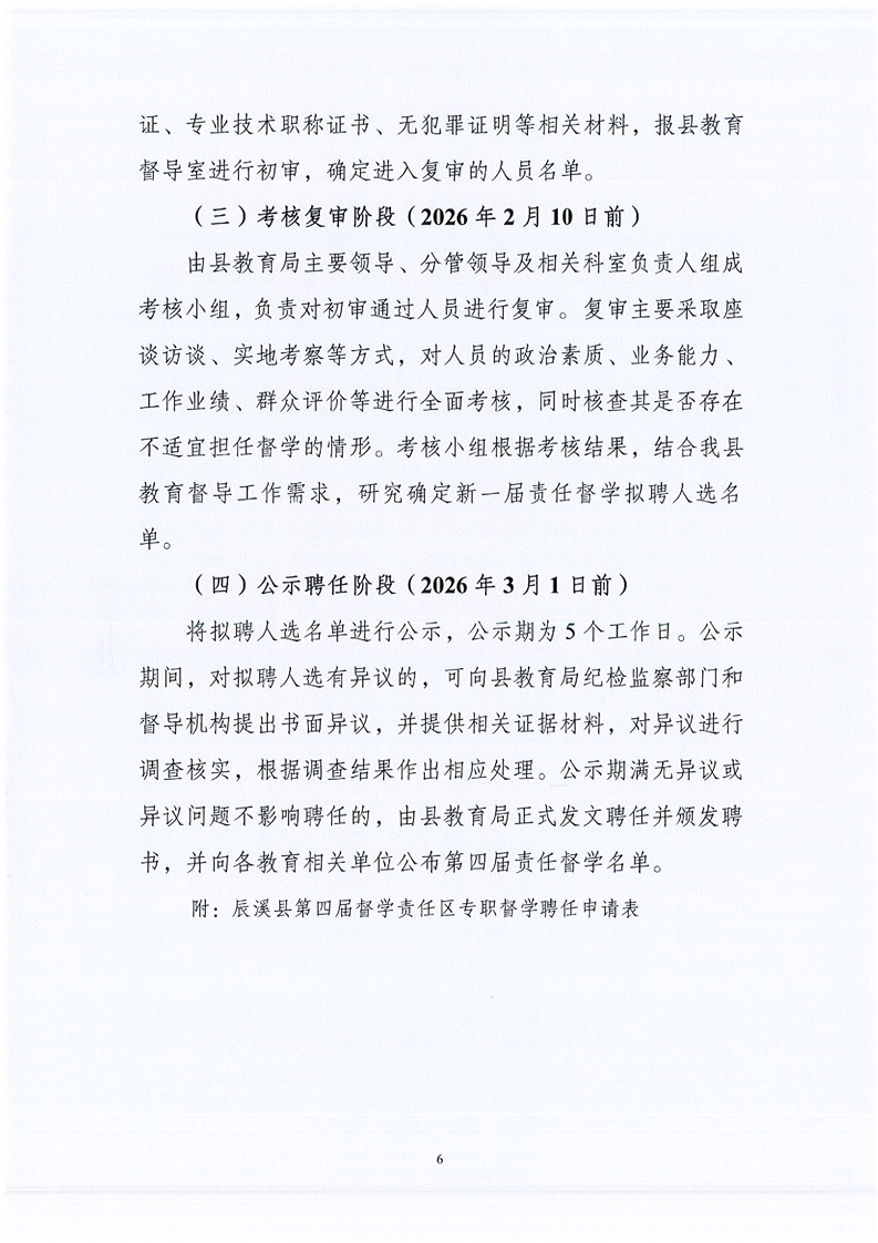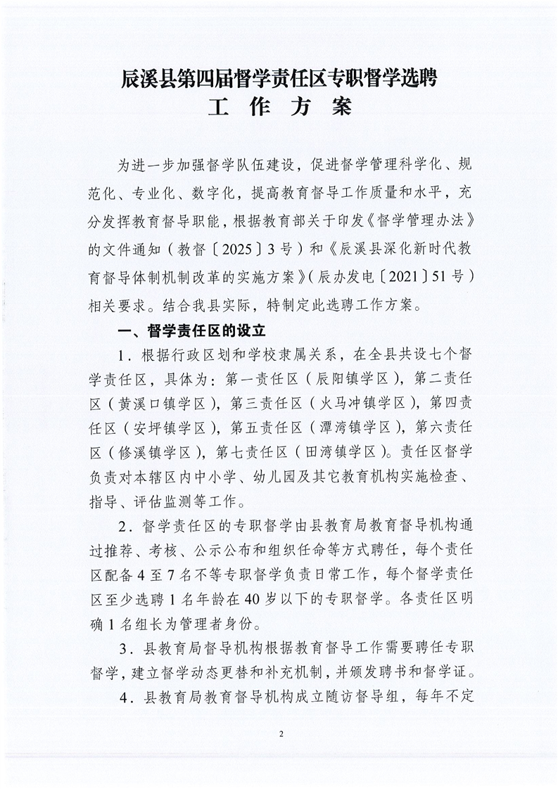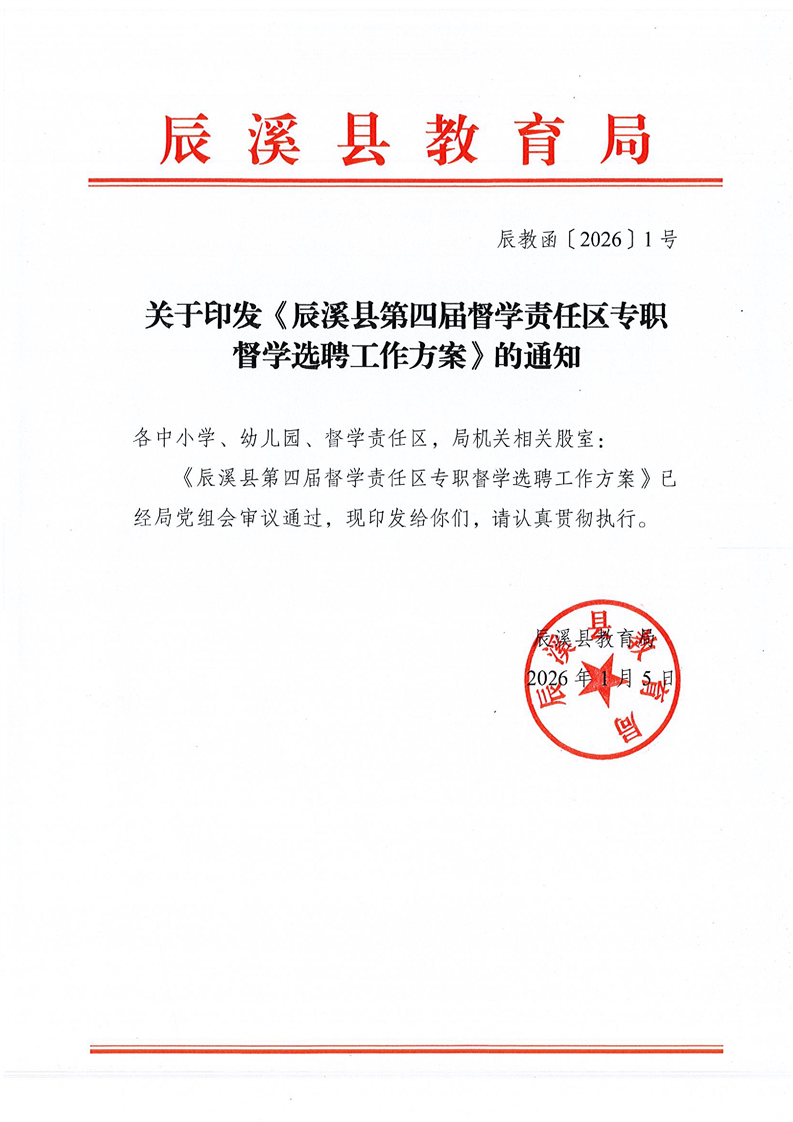 关于印发《辰溪县第四届督学责任区专职督学选聘工作方案》的通知