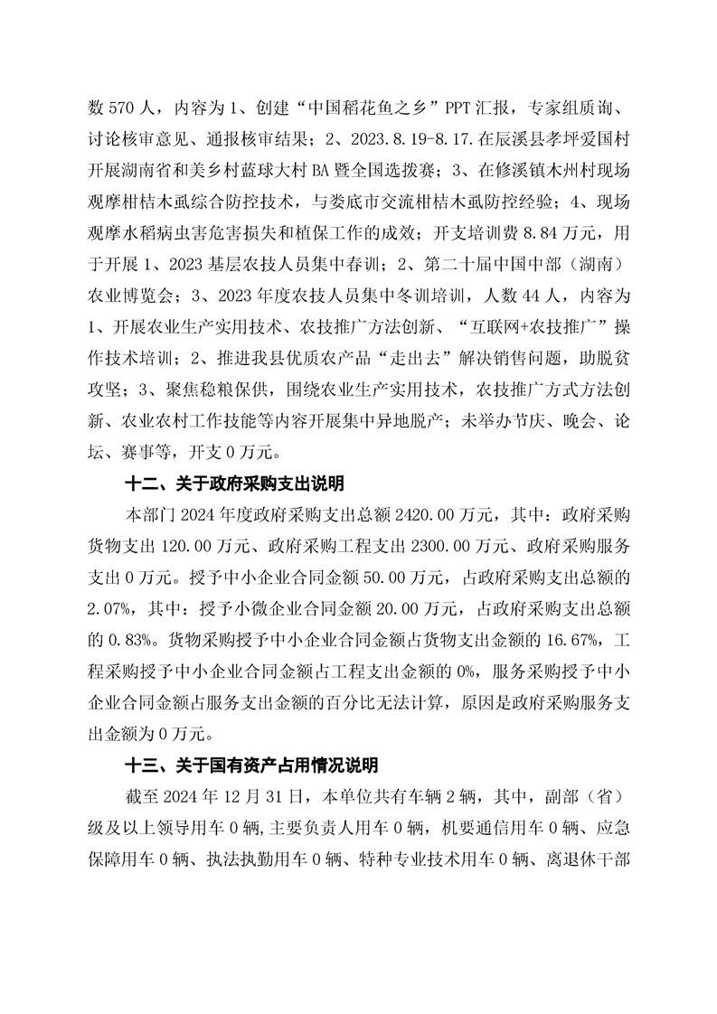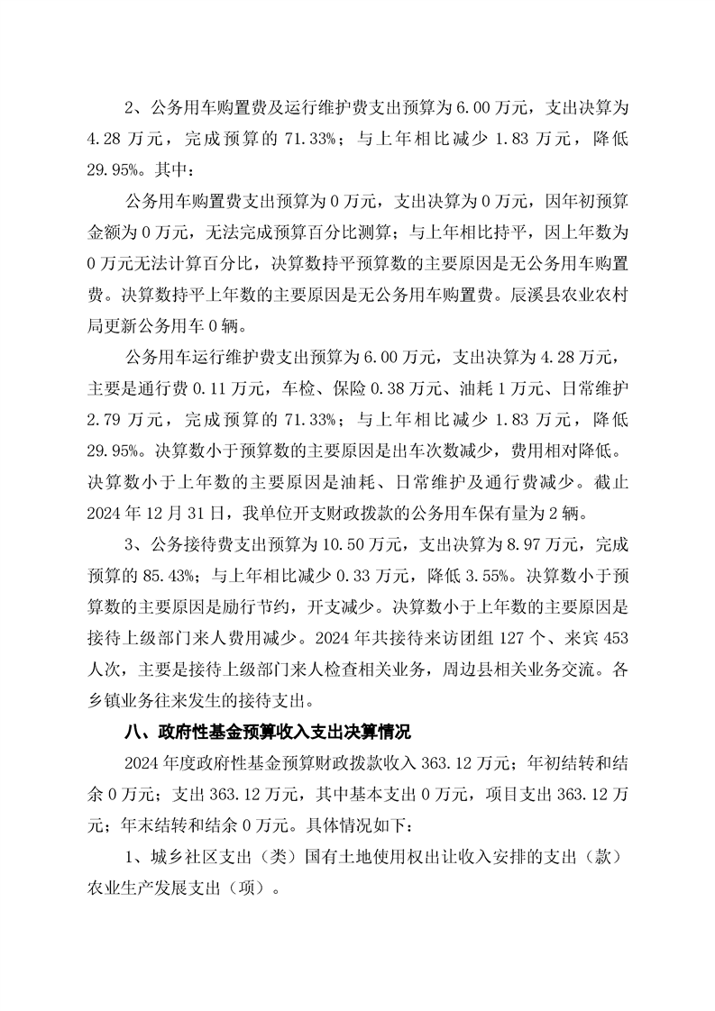 辰溪县农业农村局2024年部门整体支出绩效自评报告.docx