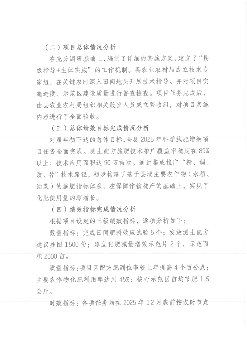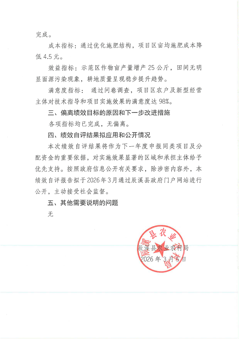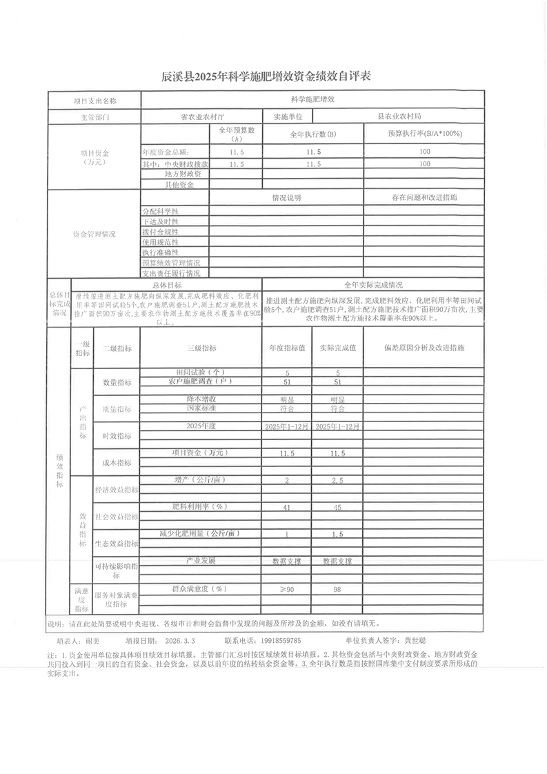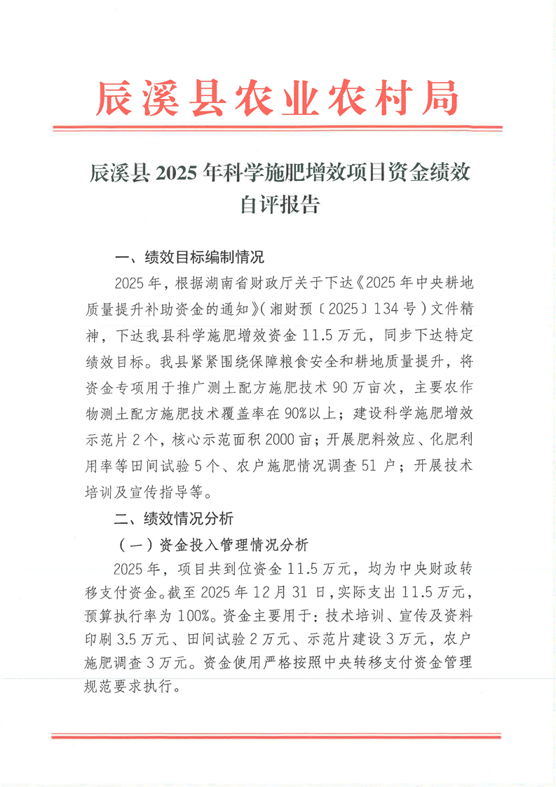 辰溪县2025年科学施肥增效项目资金绩效自评报告