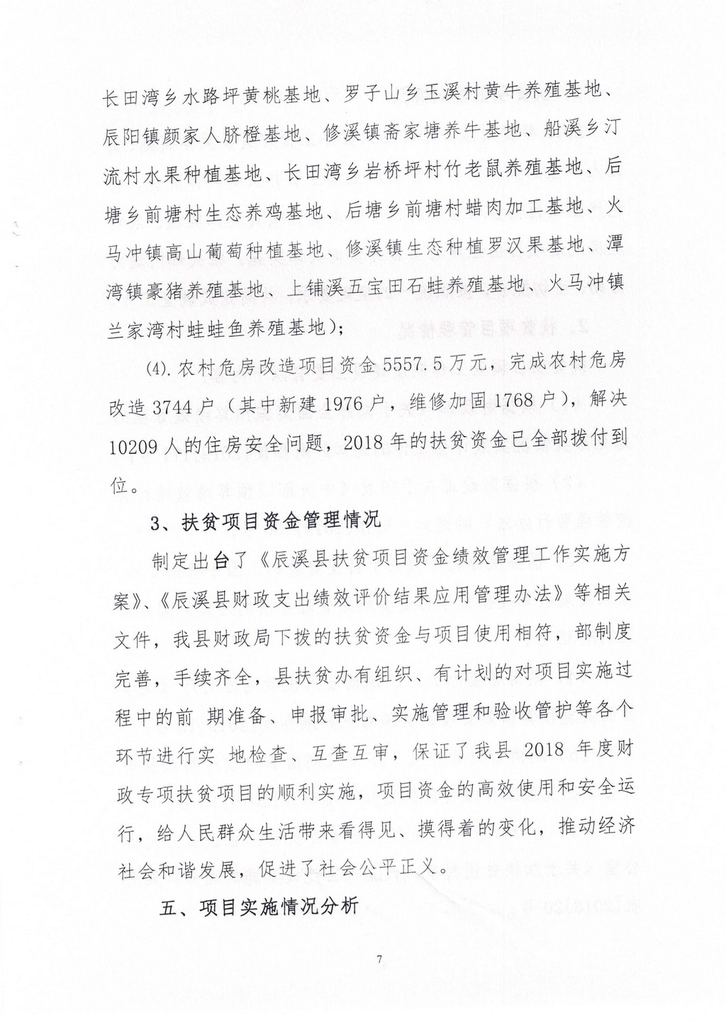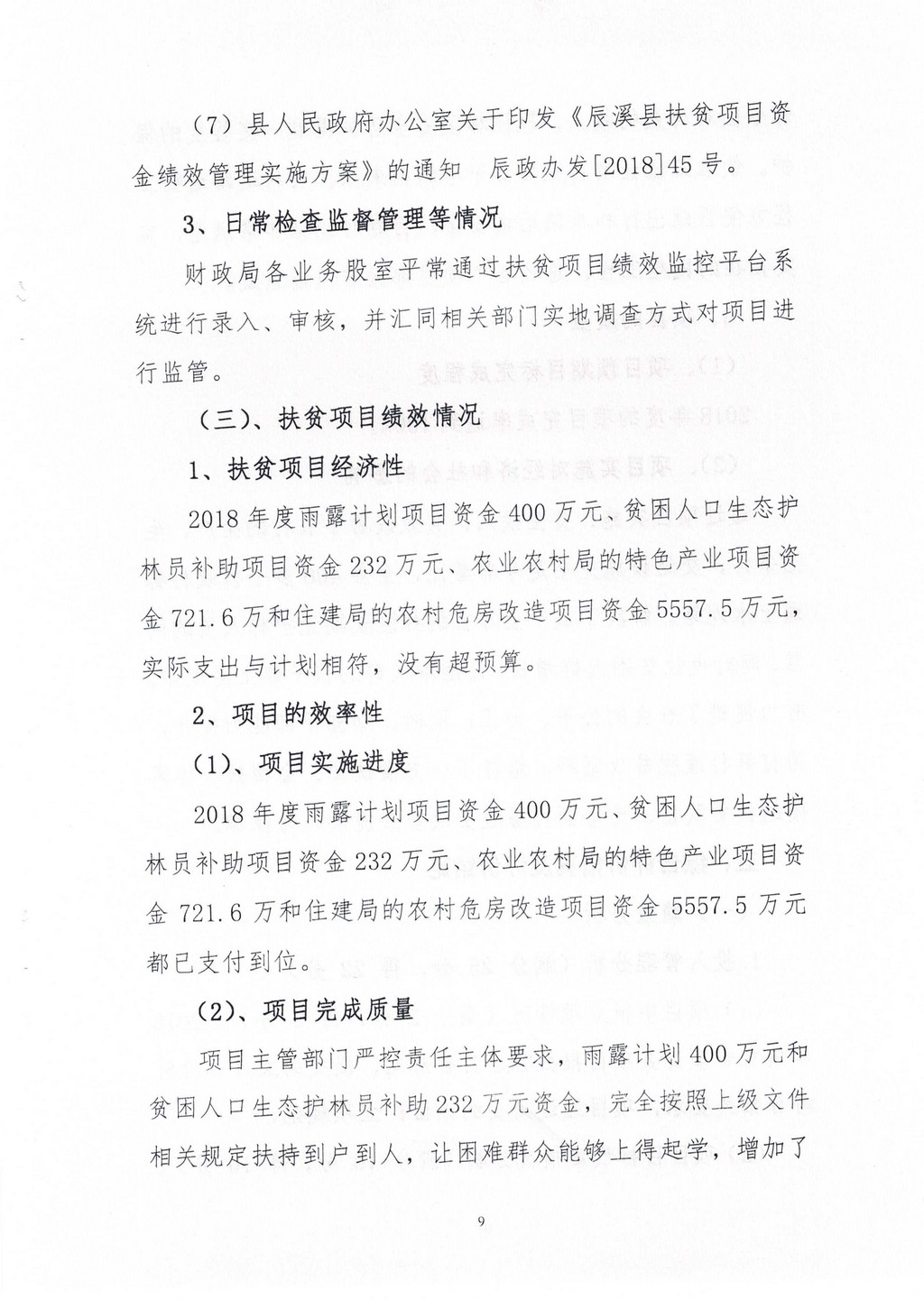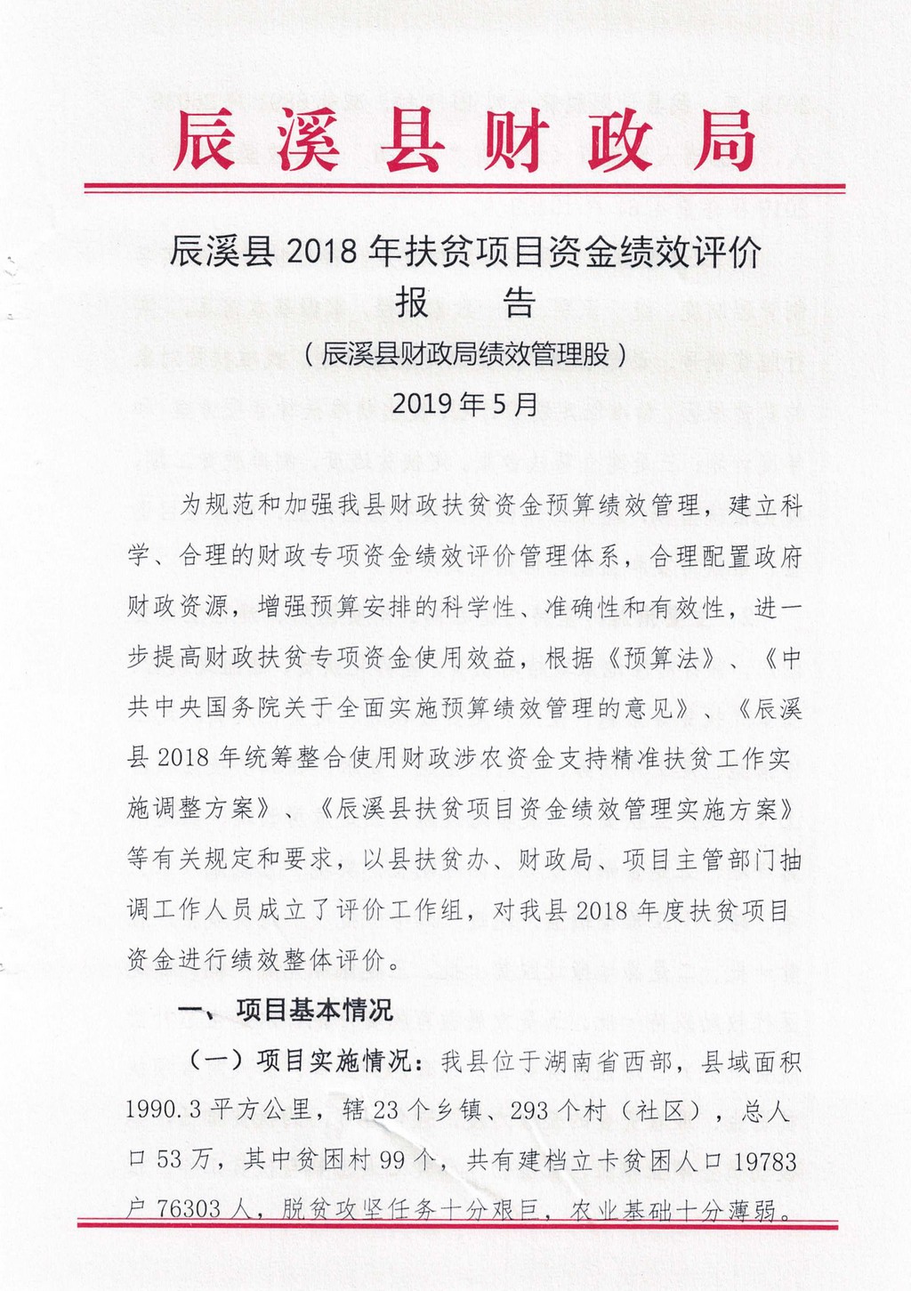 辰溪县2018年扶贫项目资金绩效评价报告