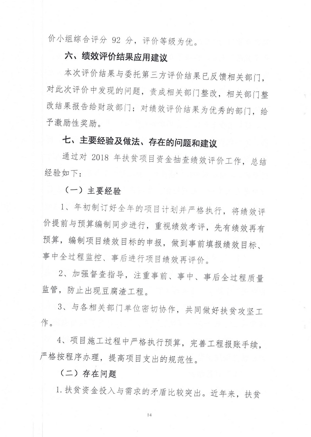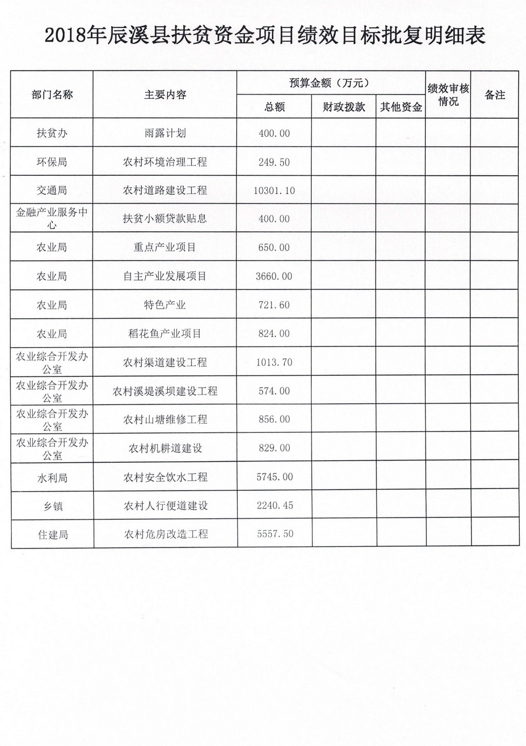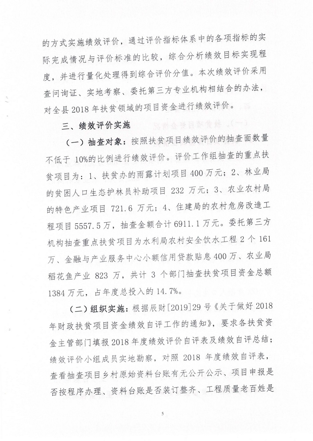 辰溪县2018年扶贫项目资金绩效评价报告
