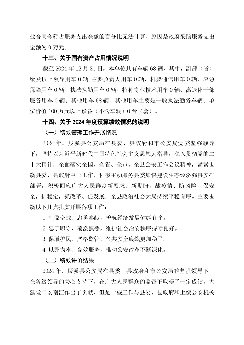 辰溪县公安局2024年部门整体支出绩效自评报告.docx