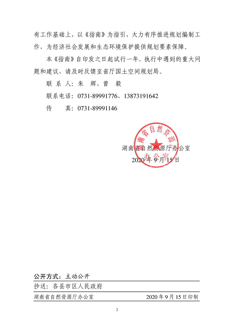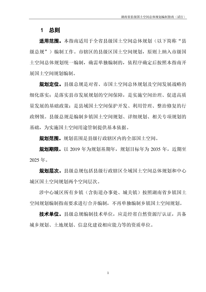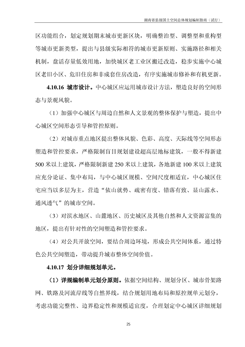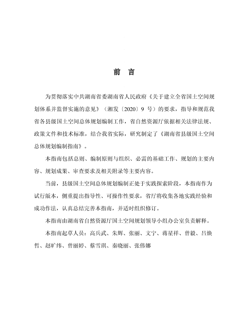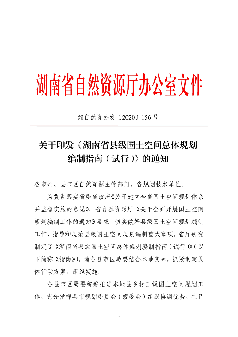 关于印发《湖南省县级国土空间总体规划编制指南(试行)》的通知