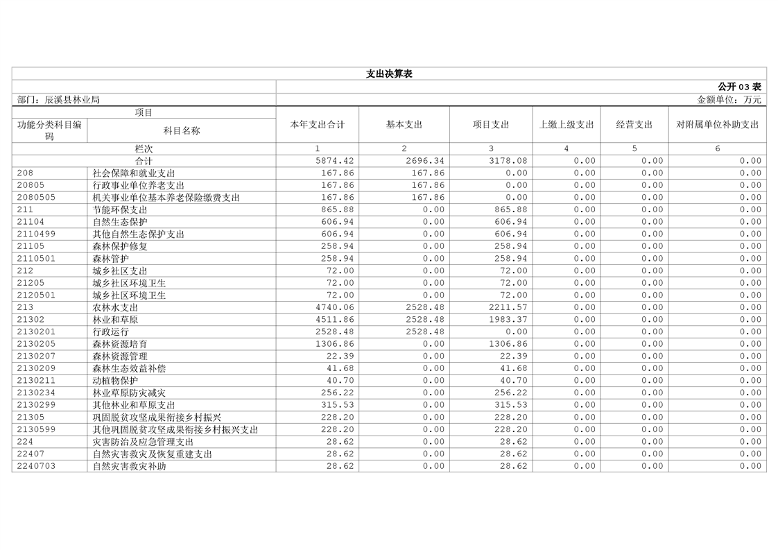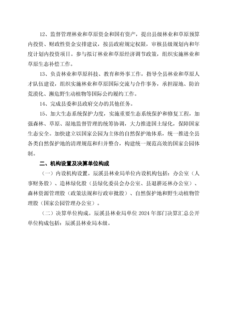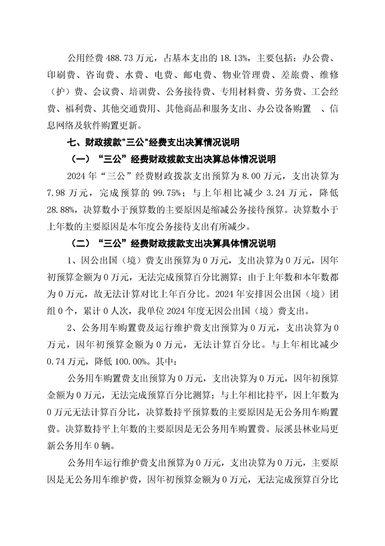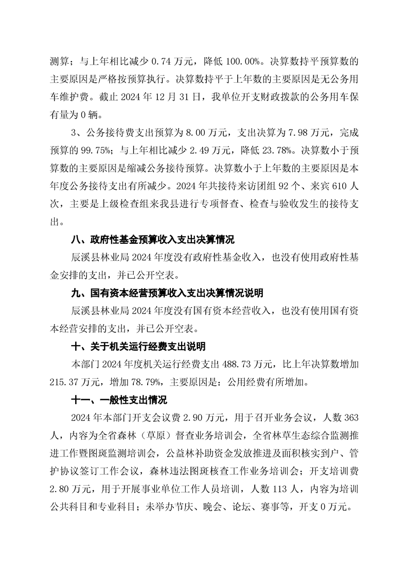 辰溪县林业局2024年部门决算公开说明