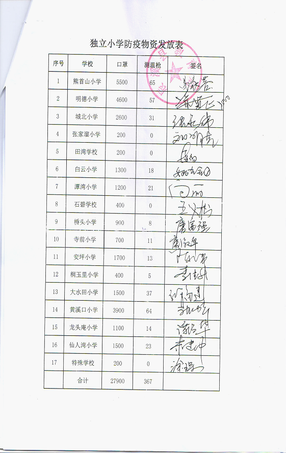 下为物资发放表: