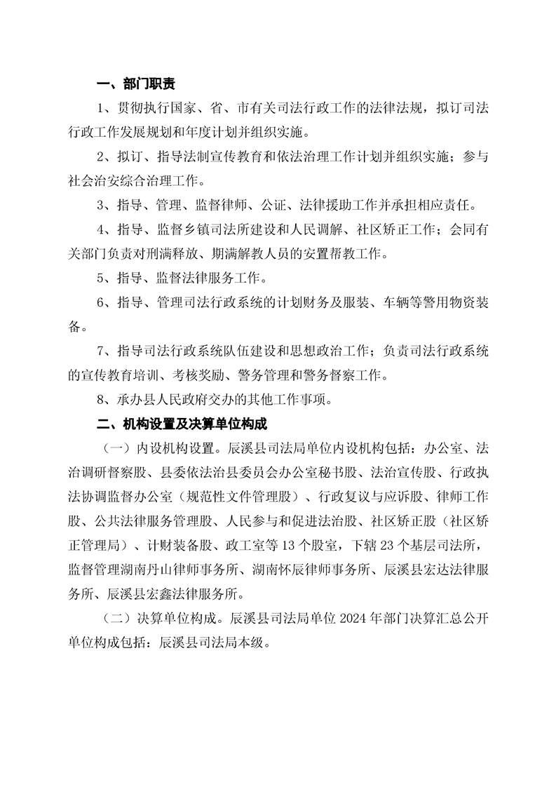 辰溪县司法局2024年部门决算公开说明