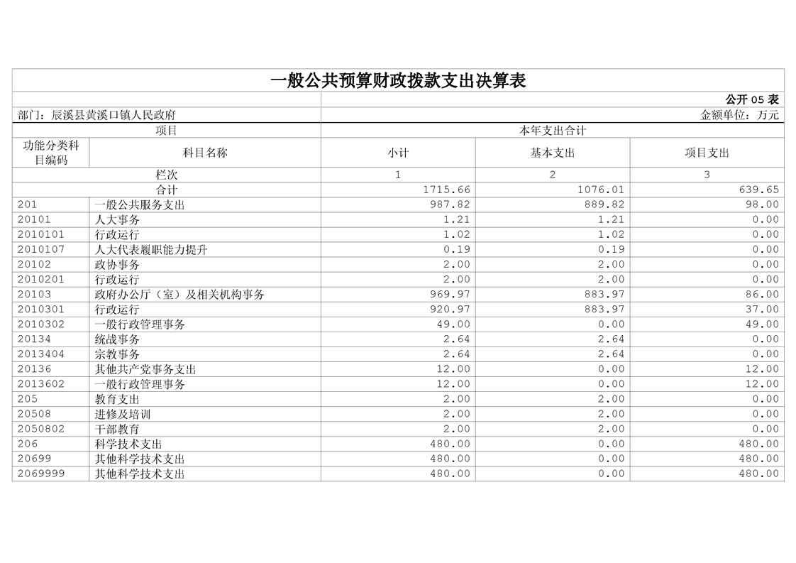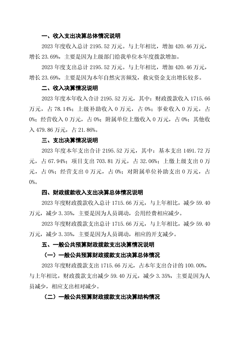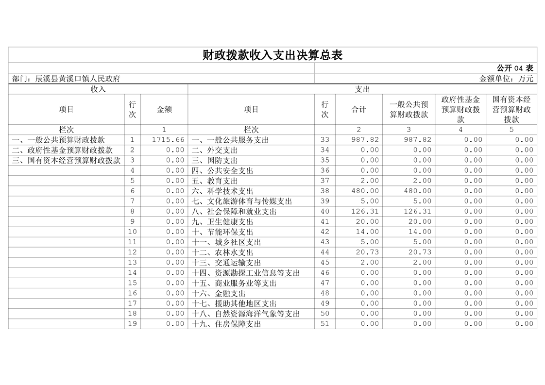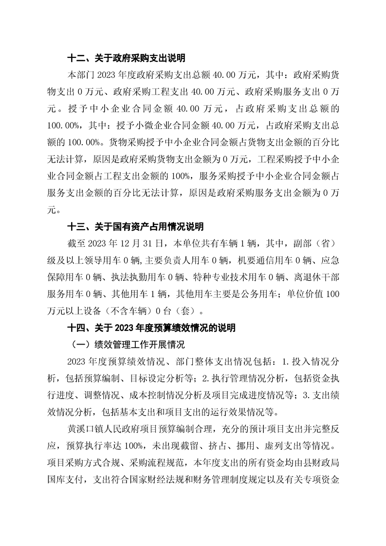 辰溪县黄溪口镇人民政府2023年部门决算公开说明