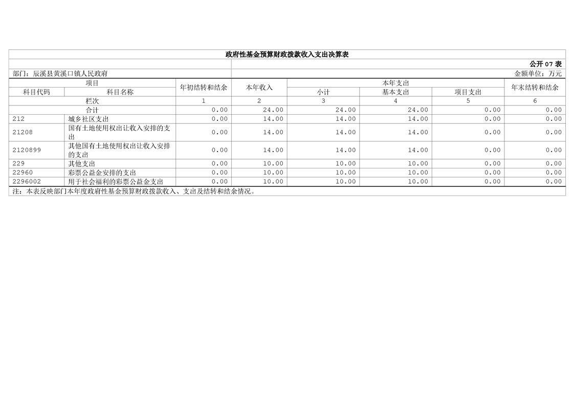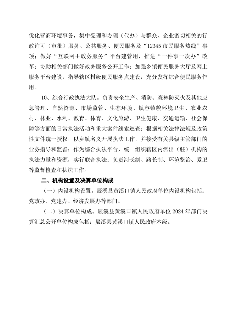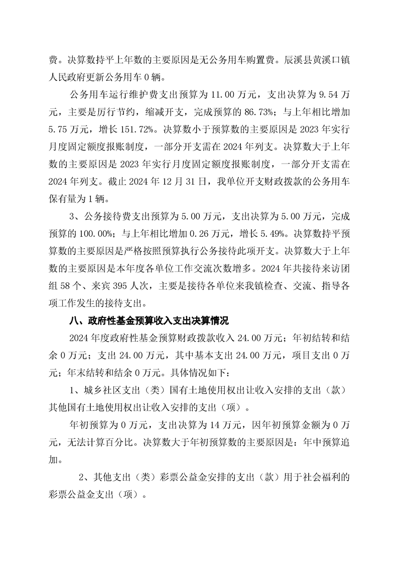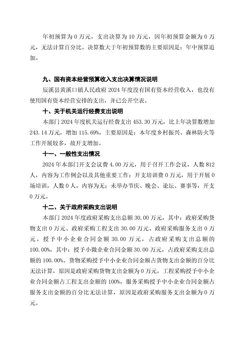 辰溪县黄溪口镇人民政府2024年部门决算公开说明