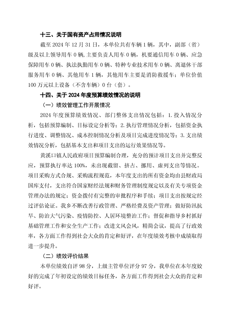 2024年度辰溪县黄溪口镇人民政府部门整体支出绩效自评报告.docx
