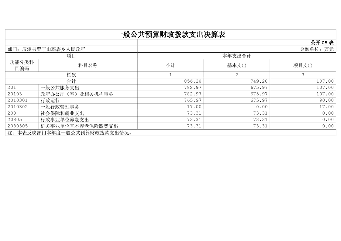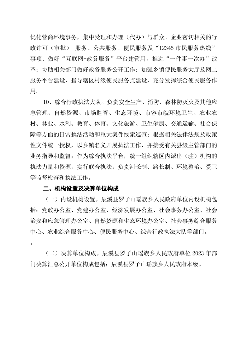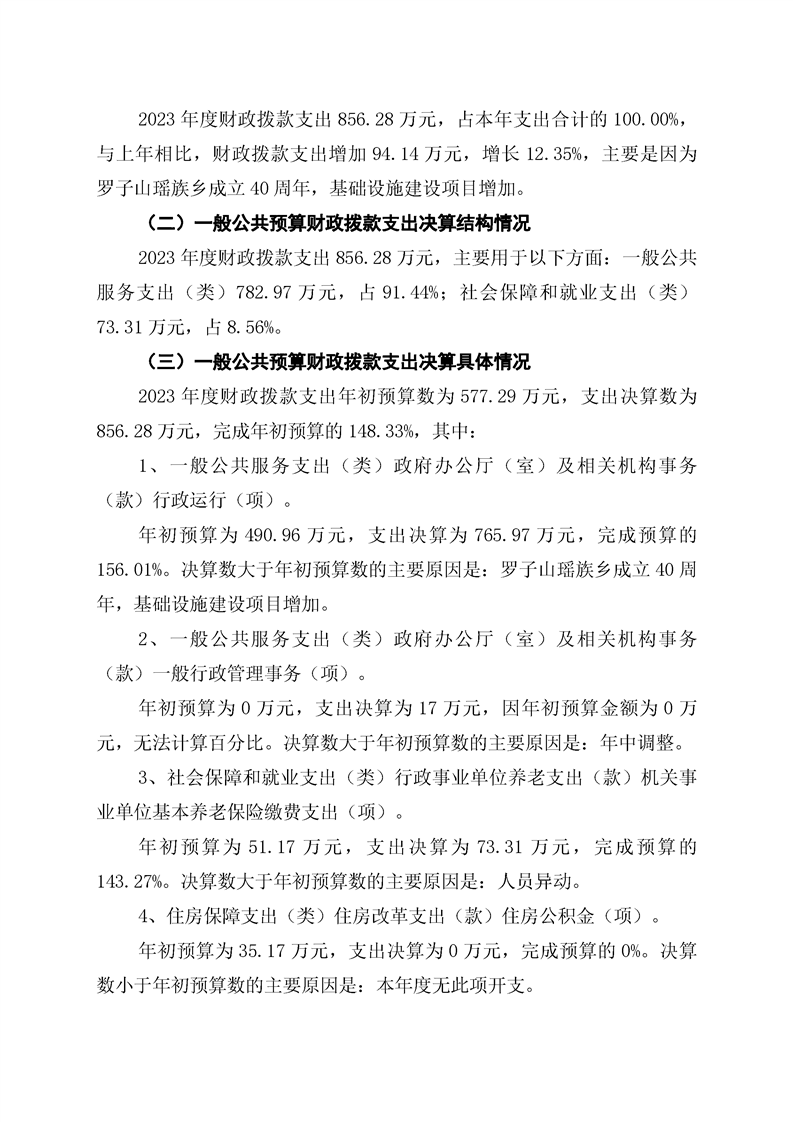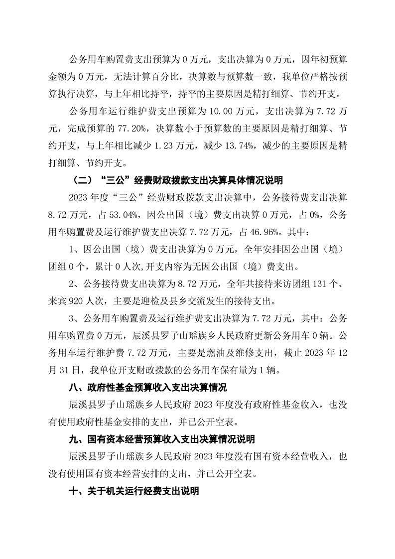 辰溪县罗子山瑶族乡人民政府2023年部门决算公开说明