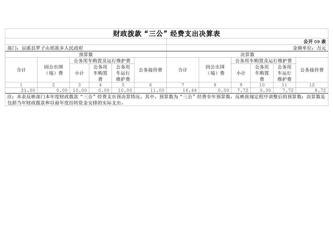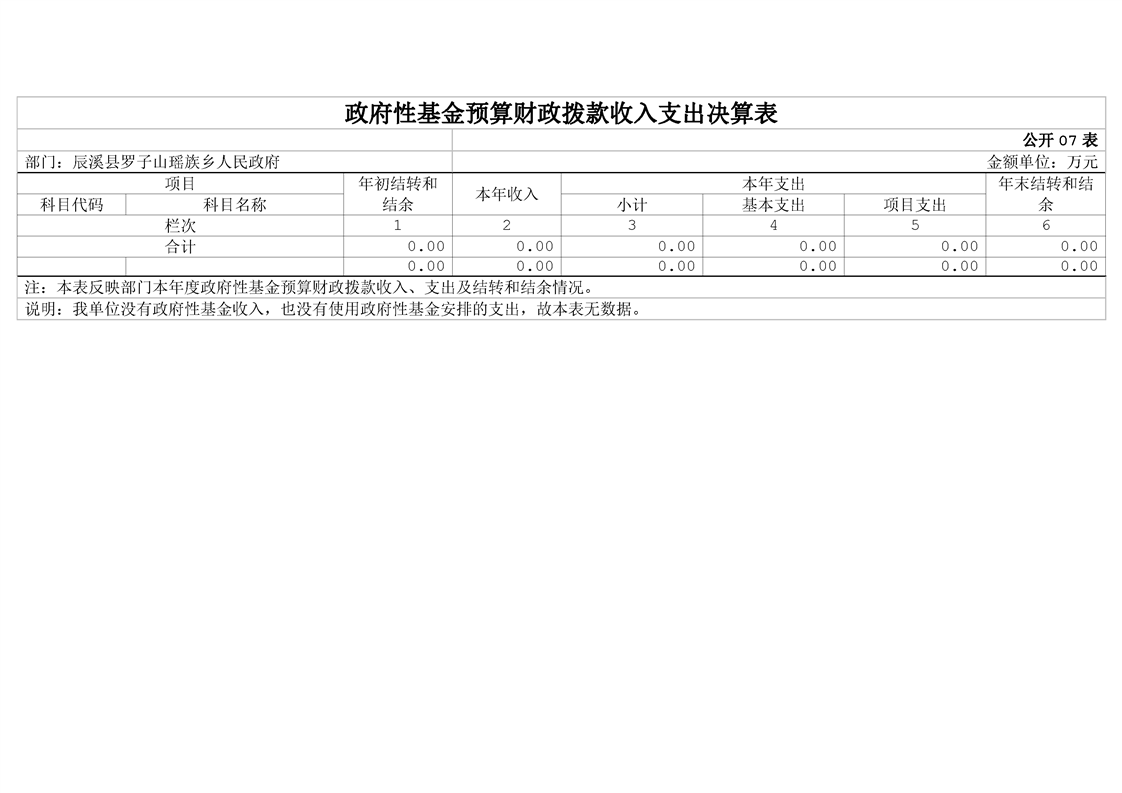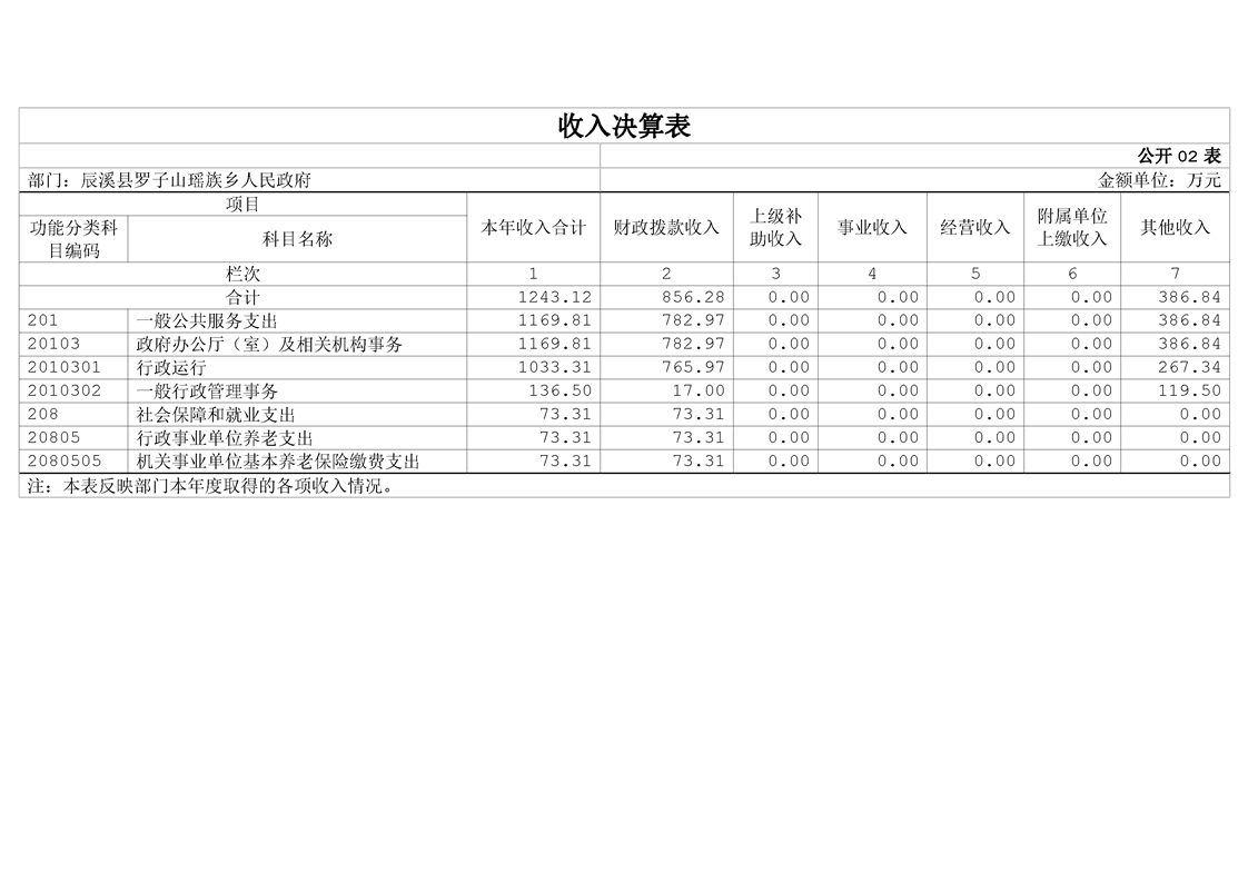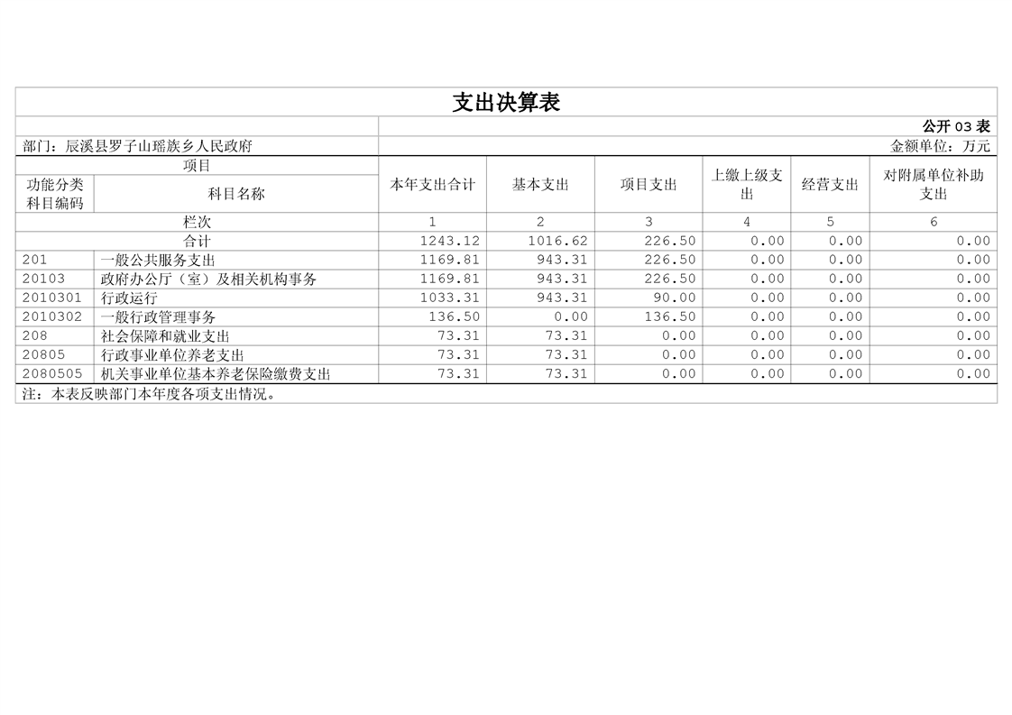 辰溪县罗子山瑶族乡人民政府2023年部门决算公开说明