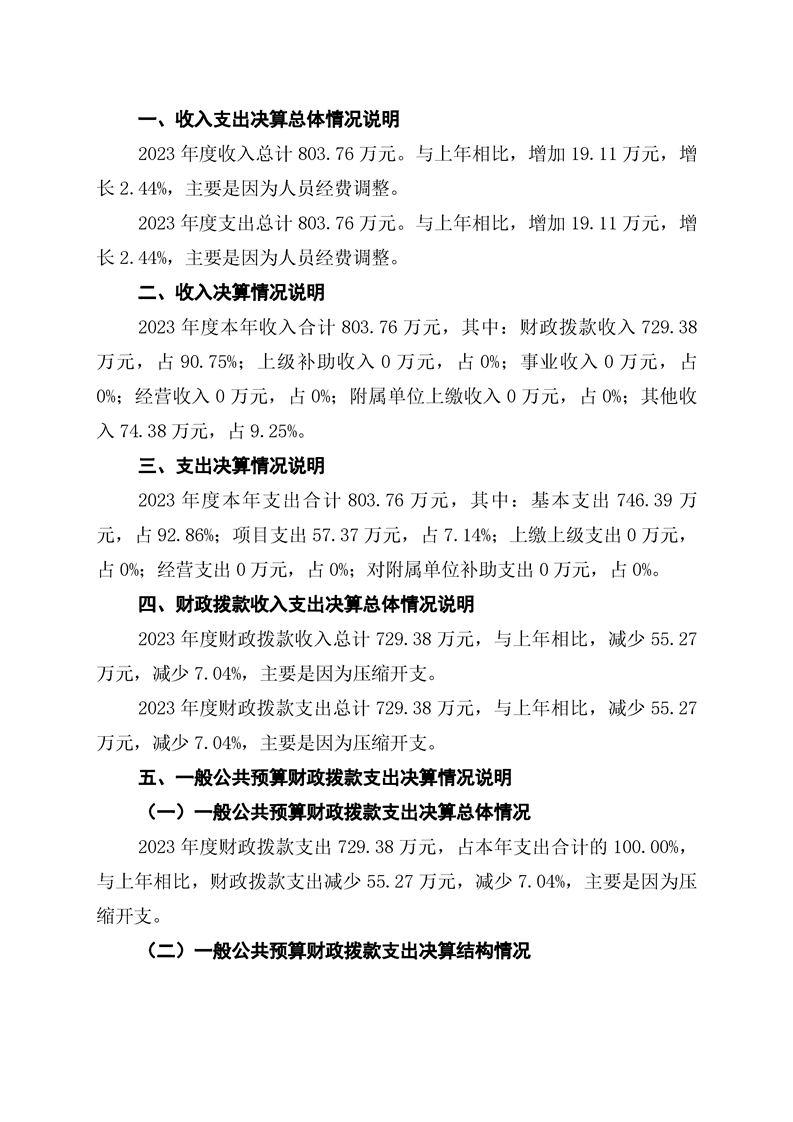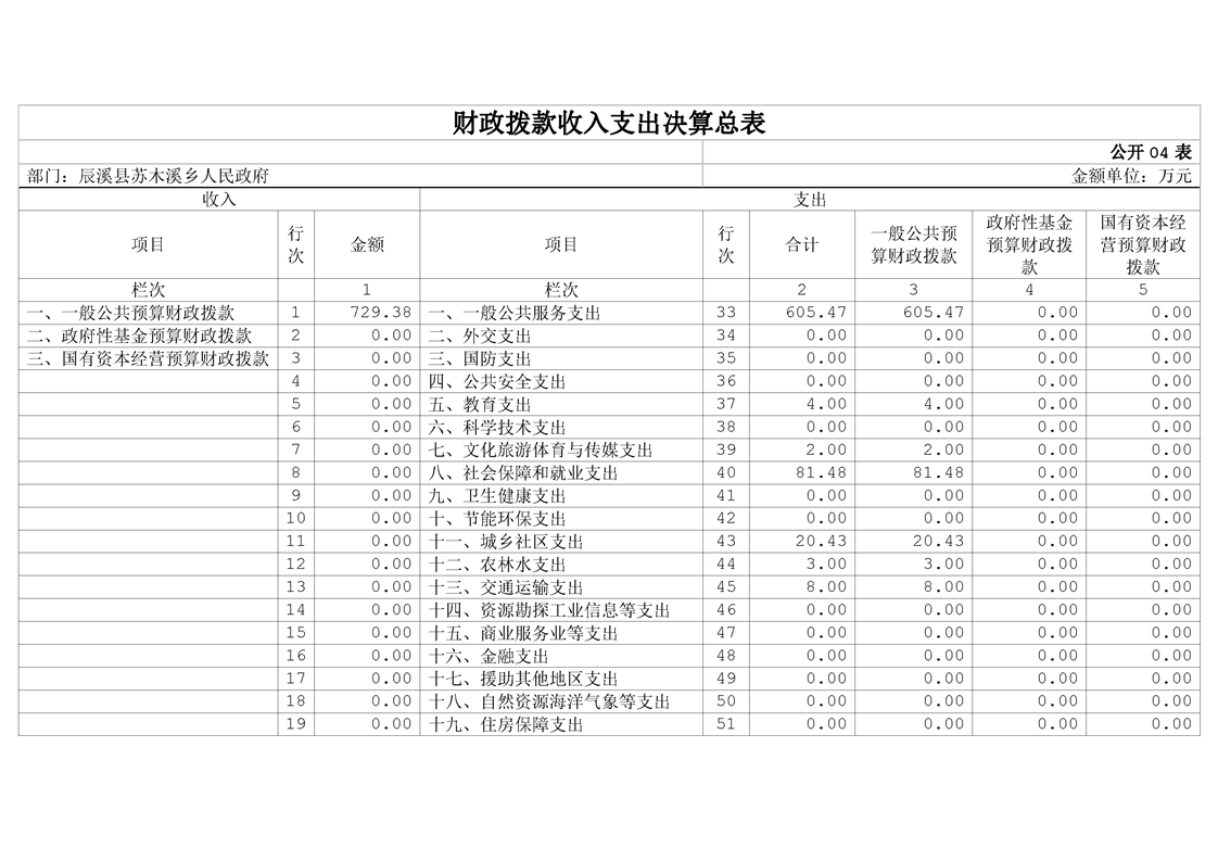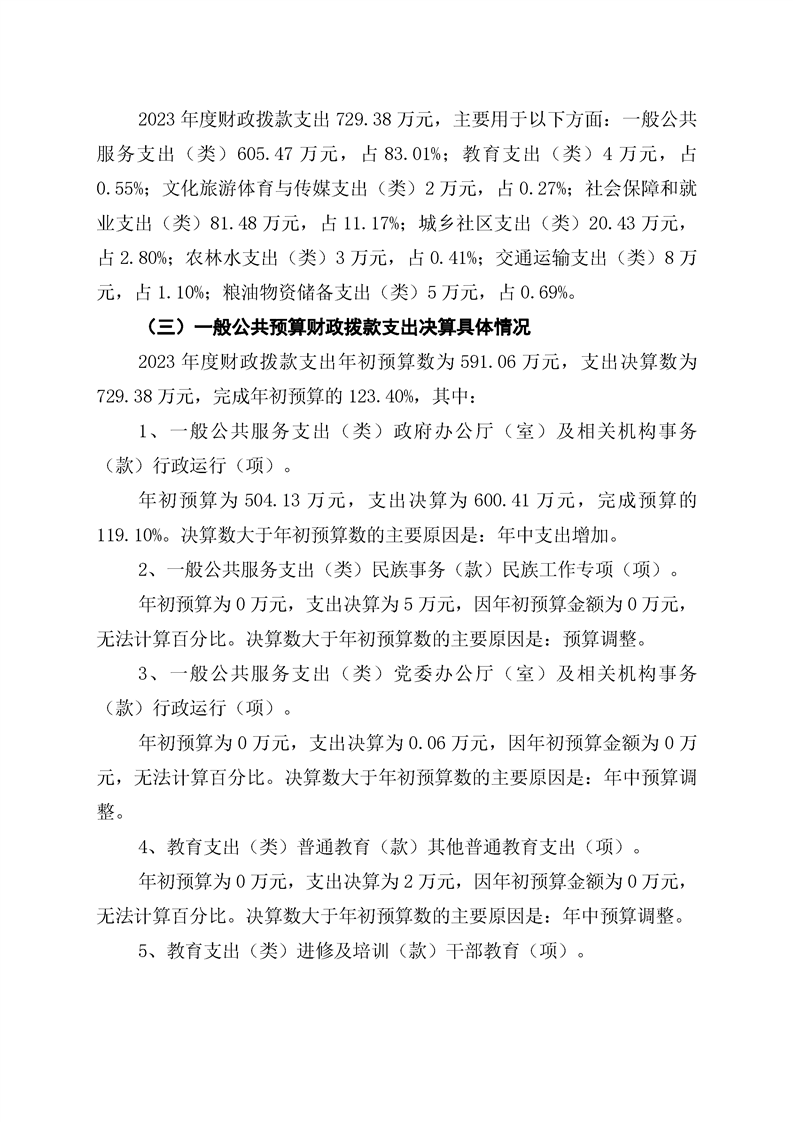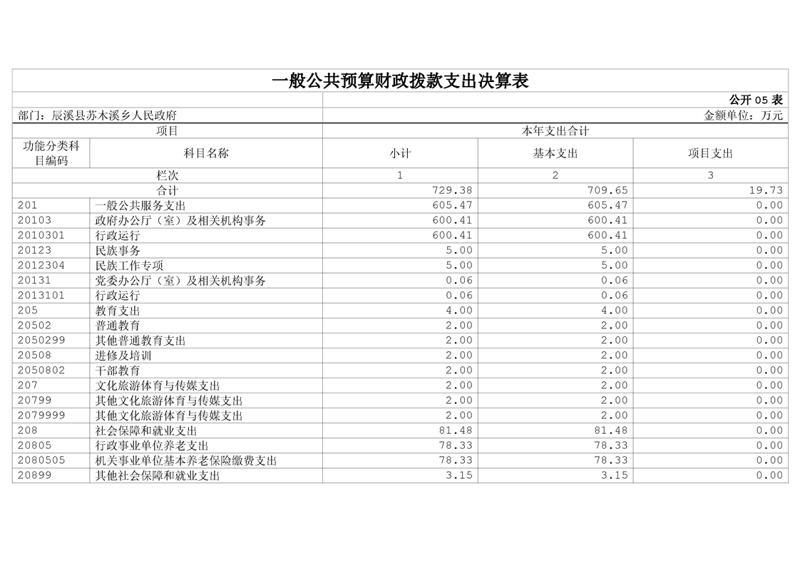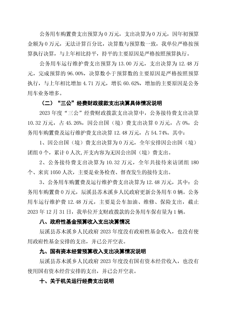 辰溪县苏木溪乡人民政府2023年部门决算公开说明
