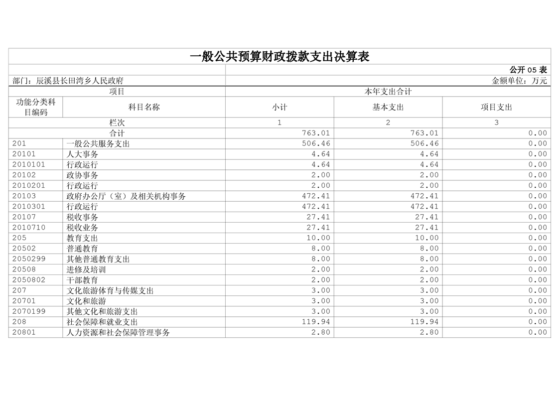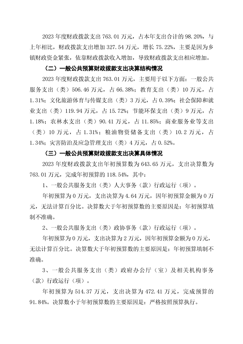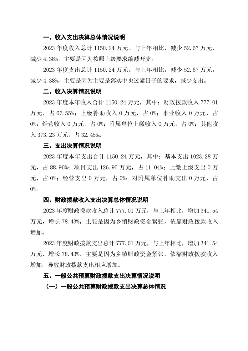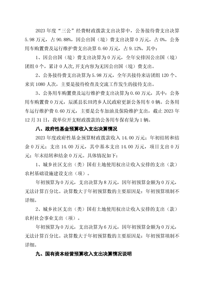 辰溪县长田湾乡人民政府2023年部门决算公开说明