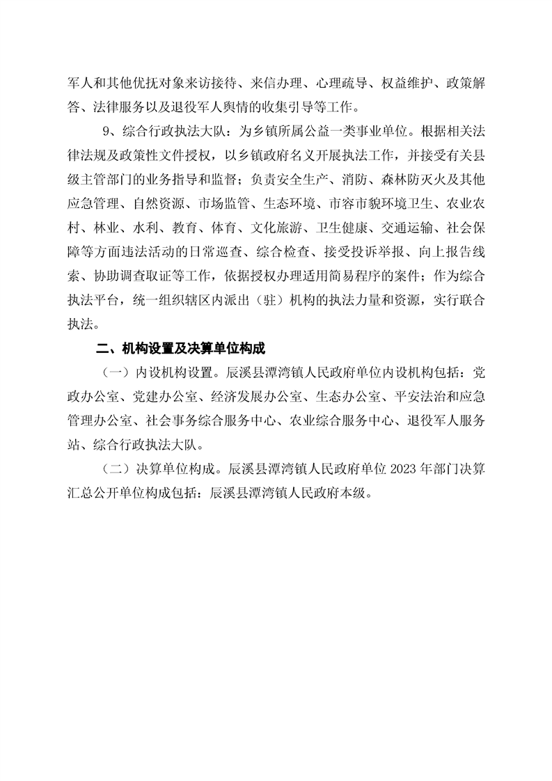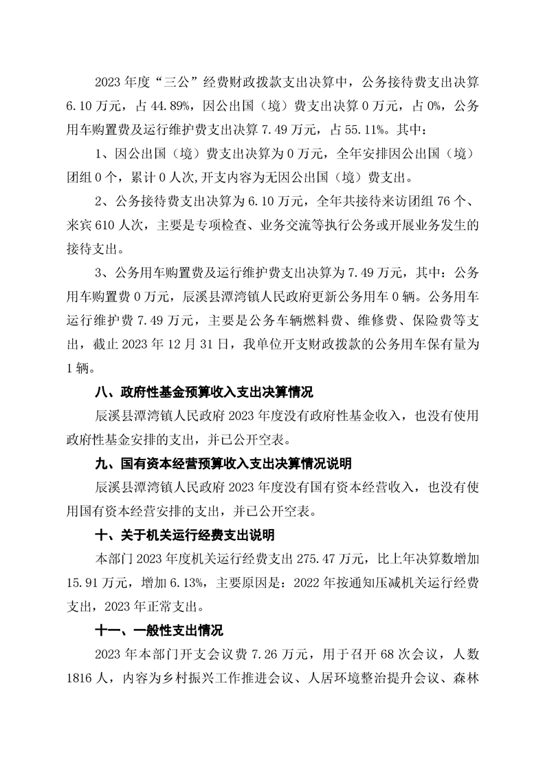 辰溪县潭湾镇人民政府2023年部门决算公开说明