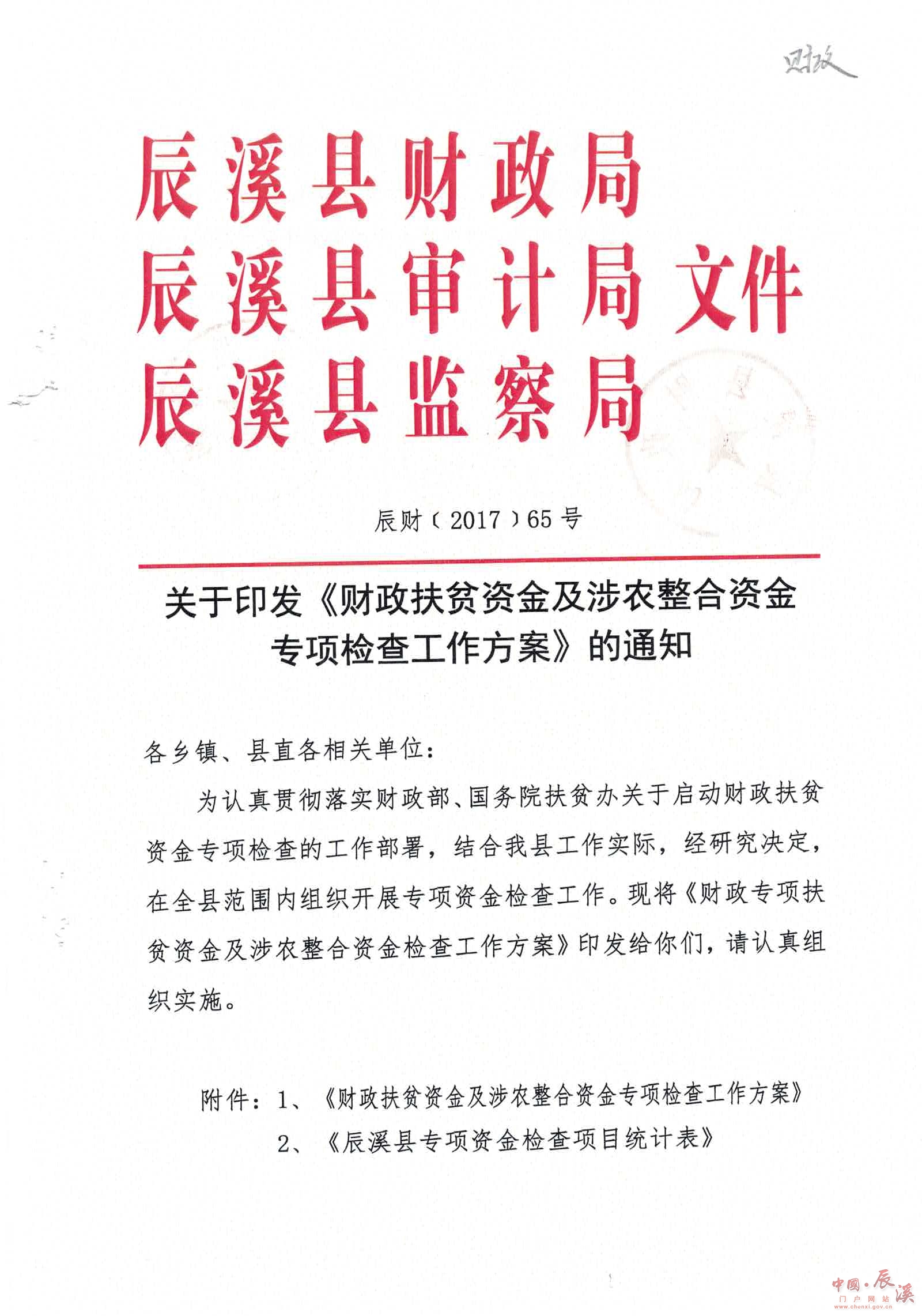 关于印发《财政扶贫资金及涉农整合资金专项检查工作方案》的通知