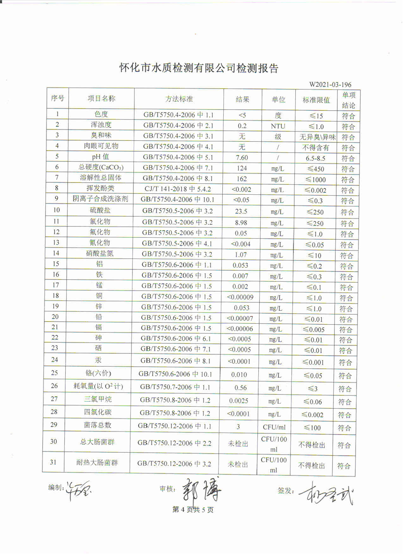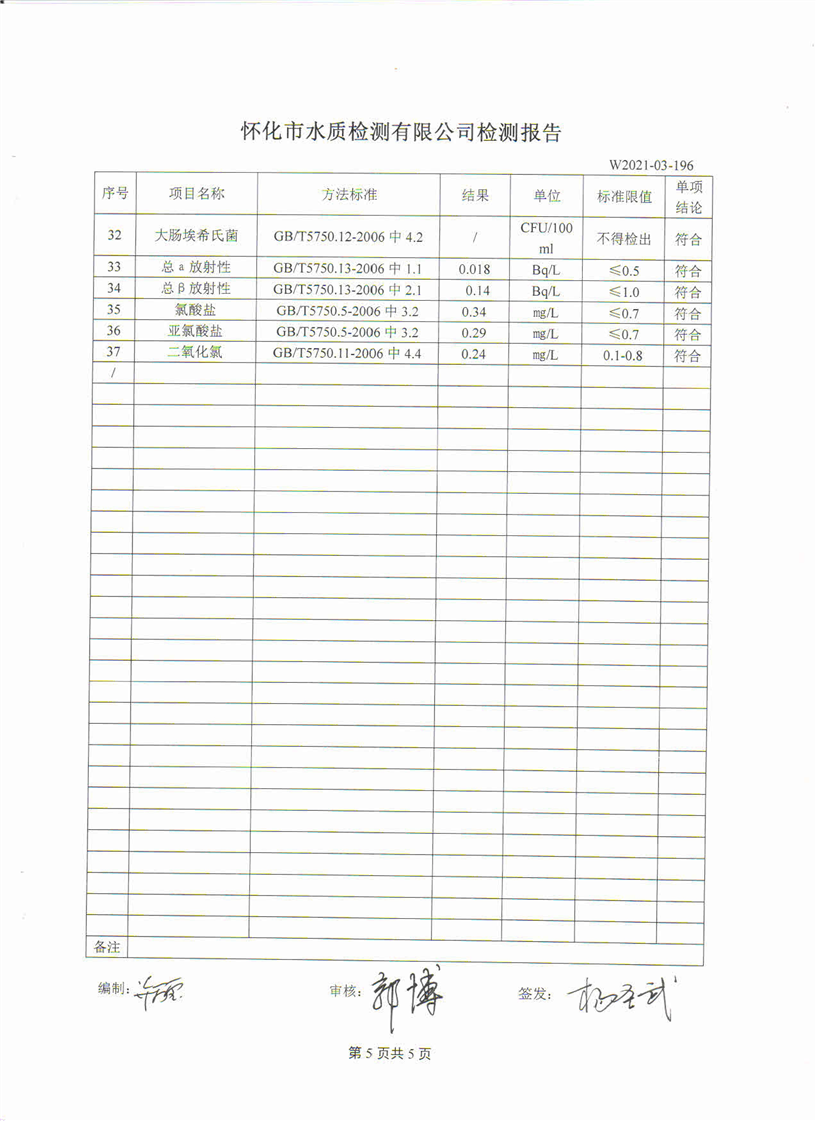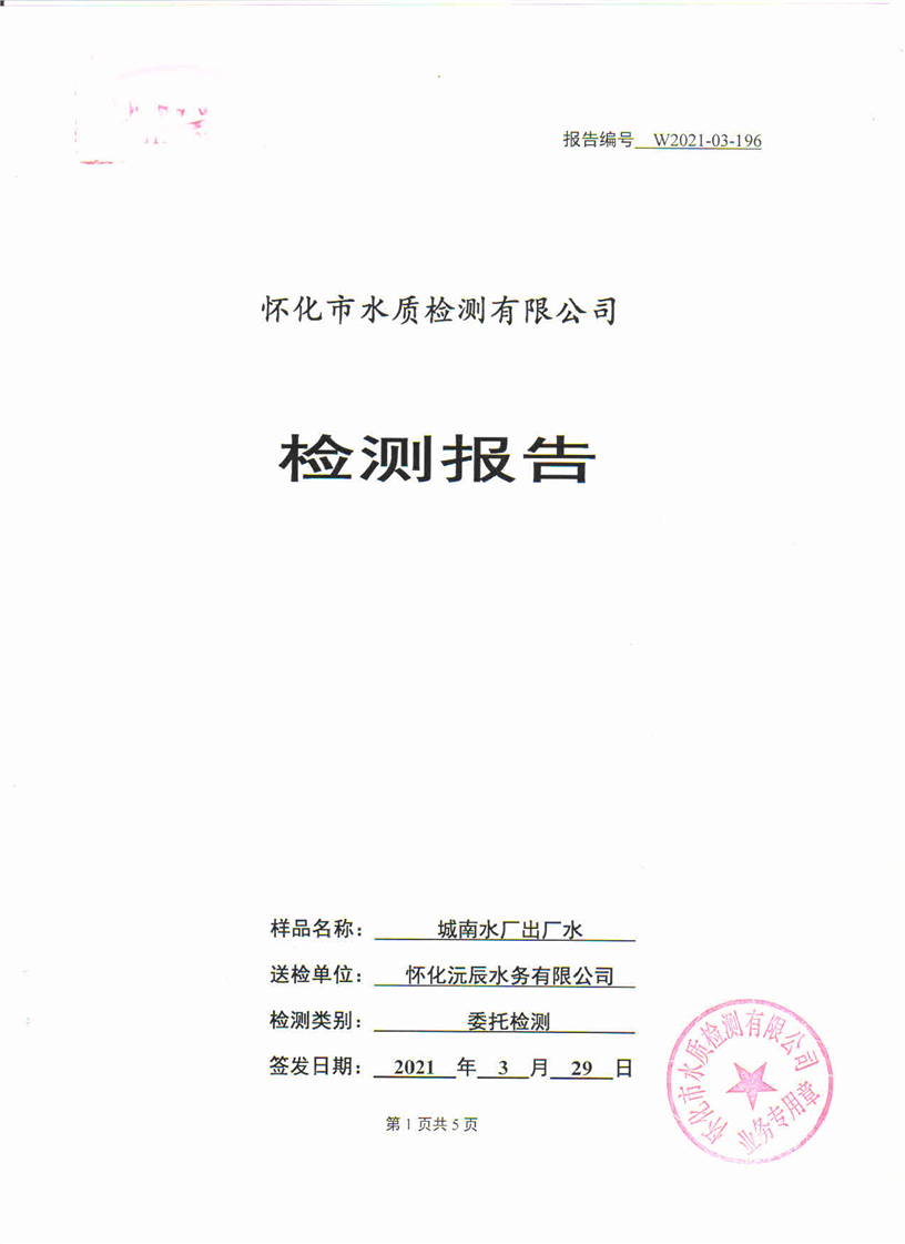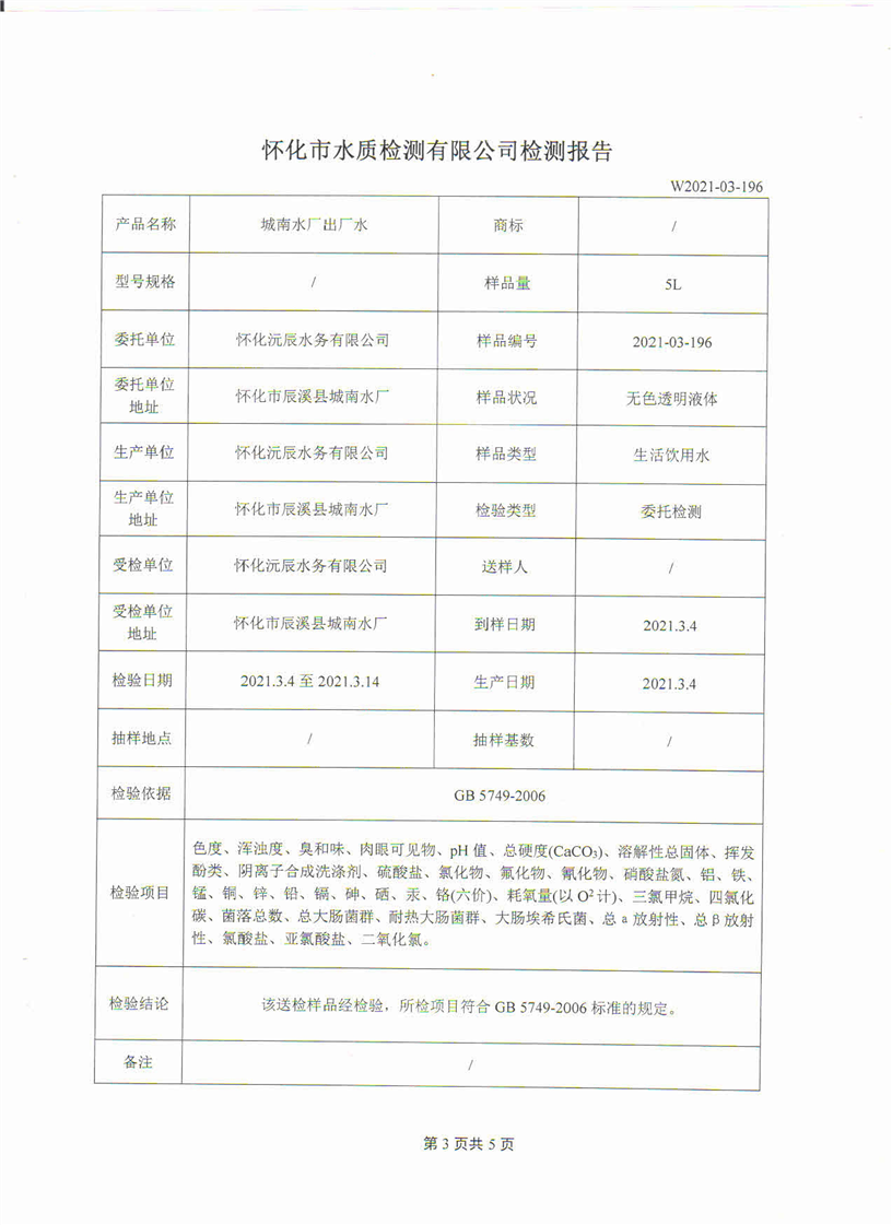 3月份城南水厂出厂水检测报告