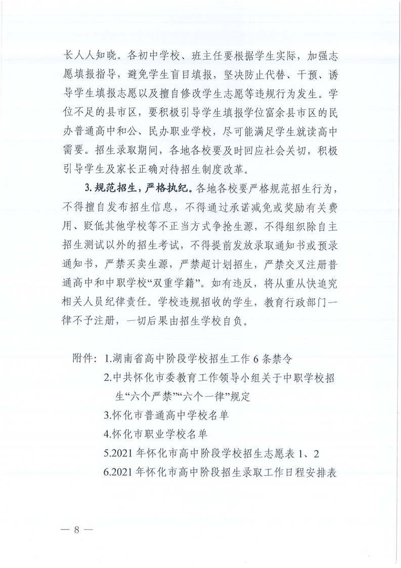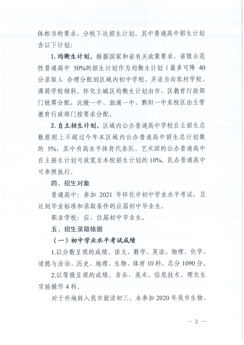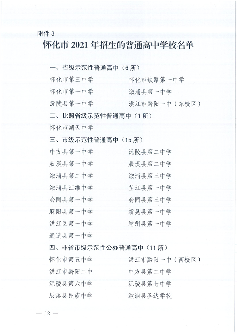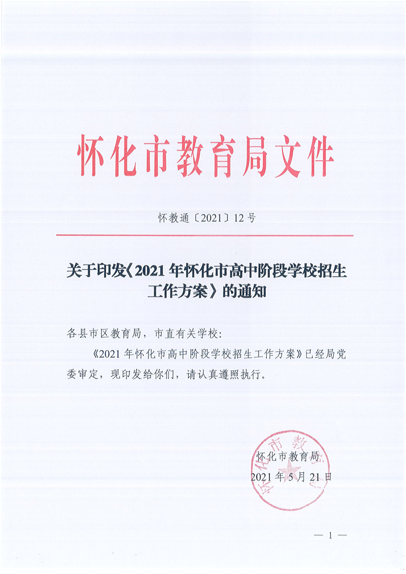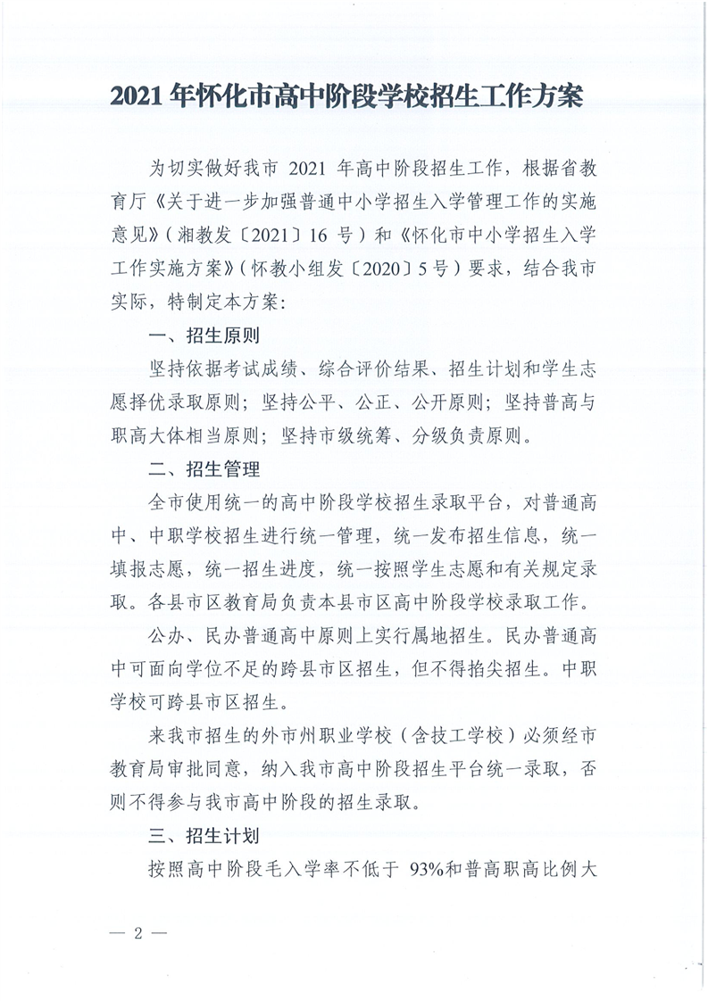 关于印发《2021年怀化市高中阶段学校招生工作方案》的通知