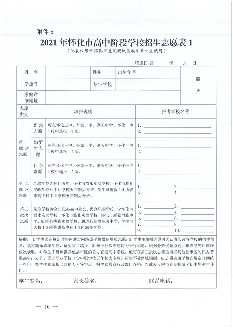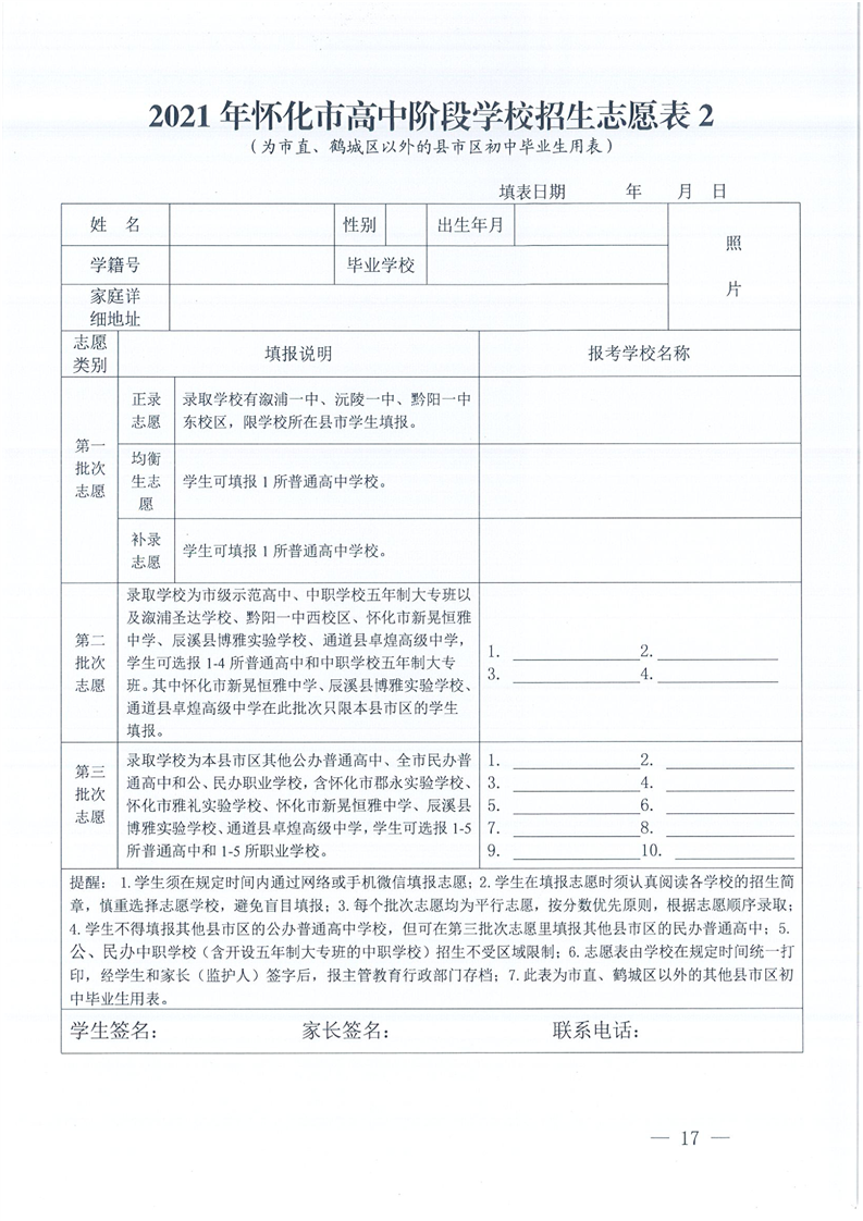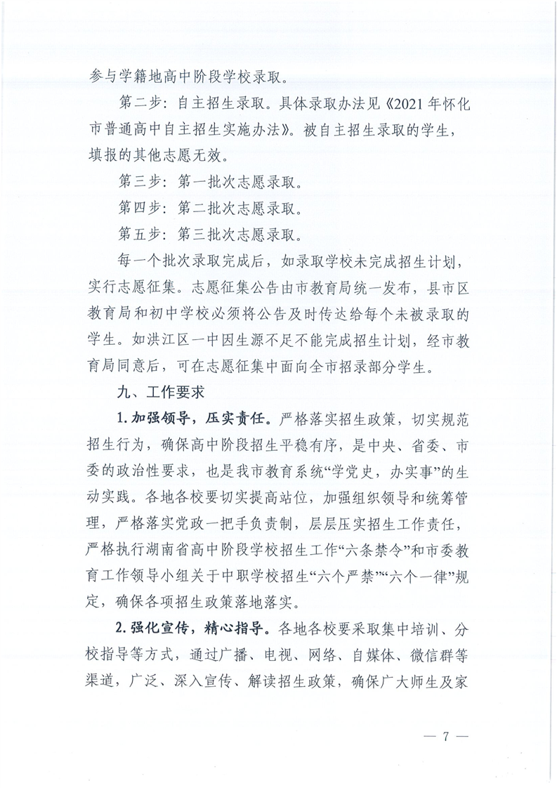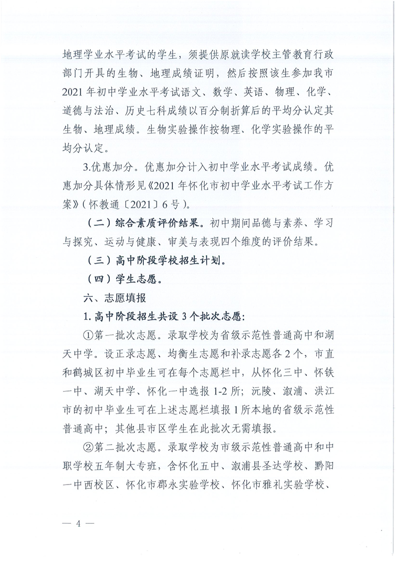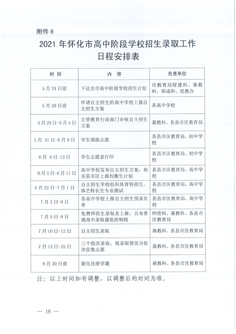 关于印发《2021年怀化市高中阶段学校招生工作方案》的通知