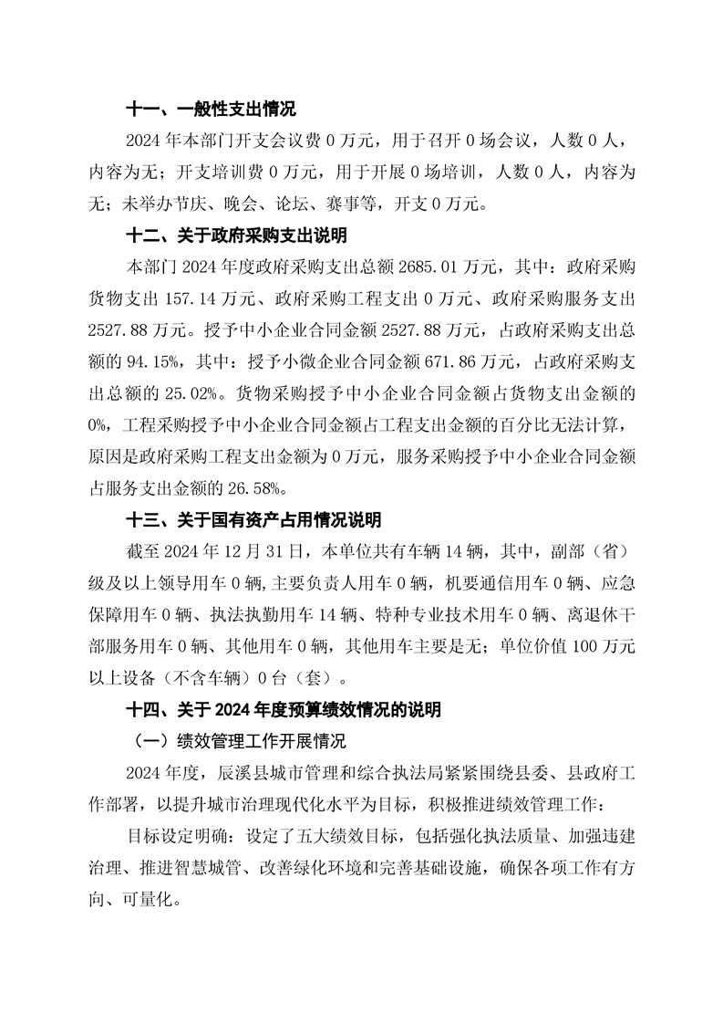 辰溪县城市管理和综合执法局2024年部门决算公开说明