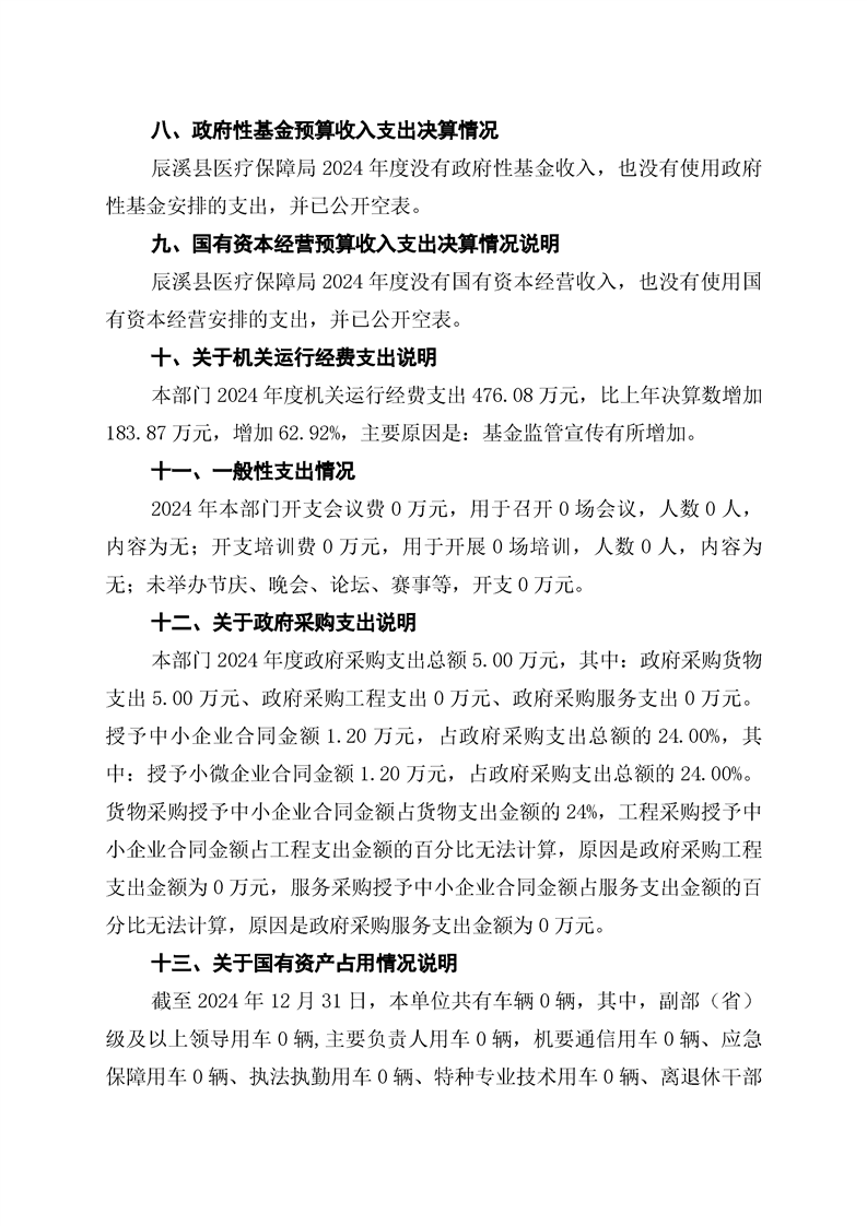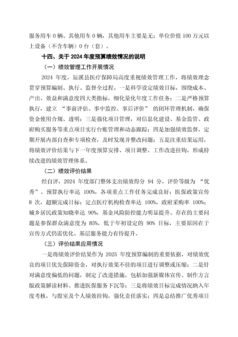 辰溪县医疗保障局2024年度部门整体支出绩效自评报告.docx