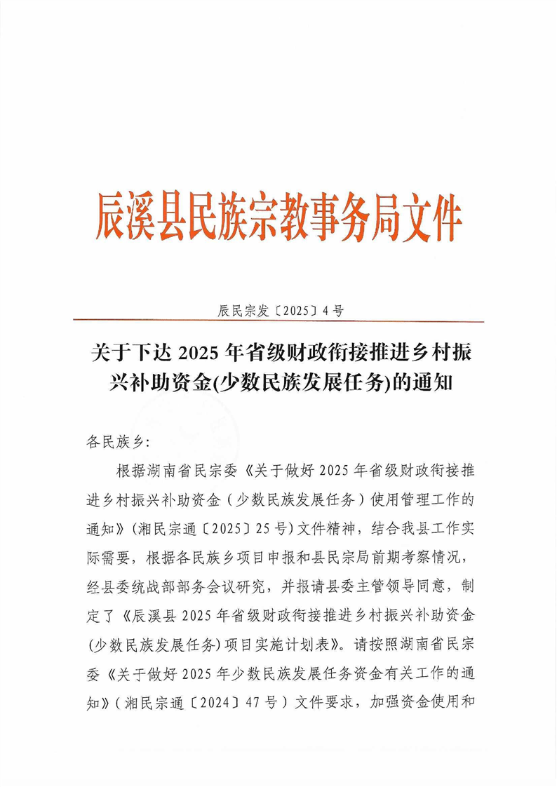 关于下达2025年省级财政衔接推进乡村振兴补助资金(少数民族发展任务)的通知