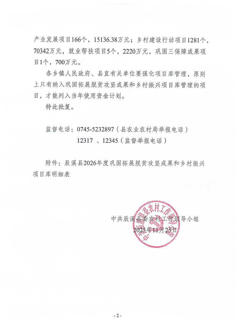 辰溪县2026年度巩固拓展脱贫攻坚成果和乡村振兴项目库明细表.xls