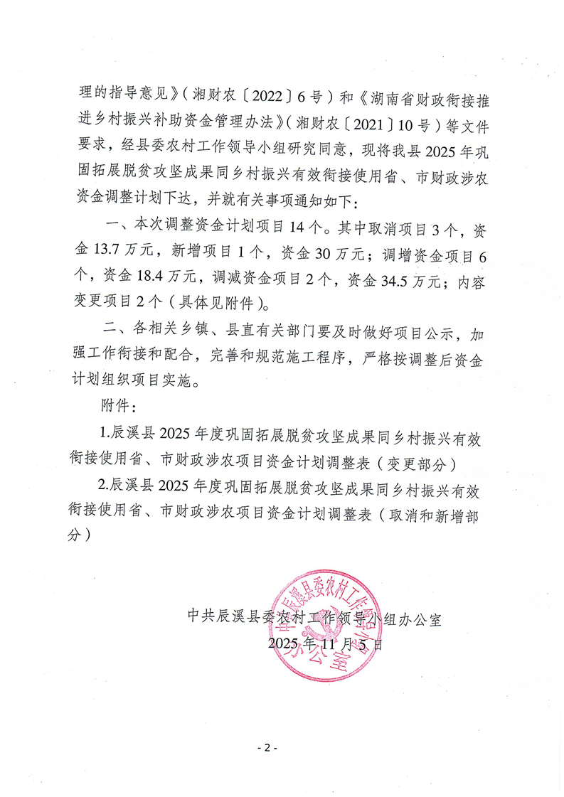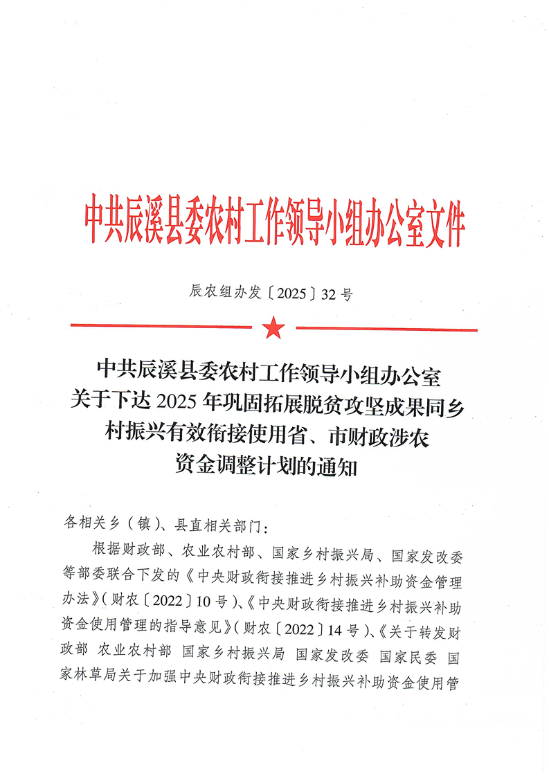 关于下达2025年巩固拓展脱贫攻坚成果同乡村振兴有效衔接使用省、市财政涉农资金调整计划的通知