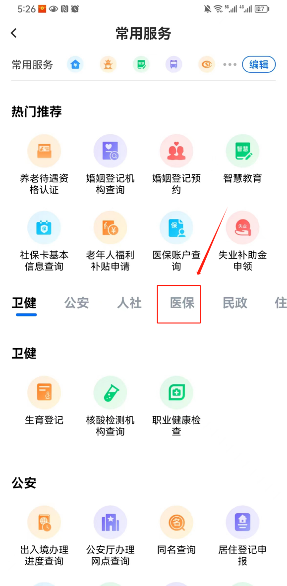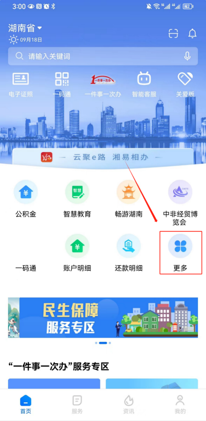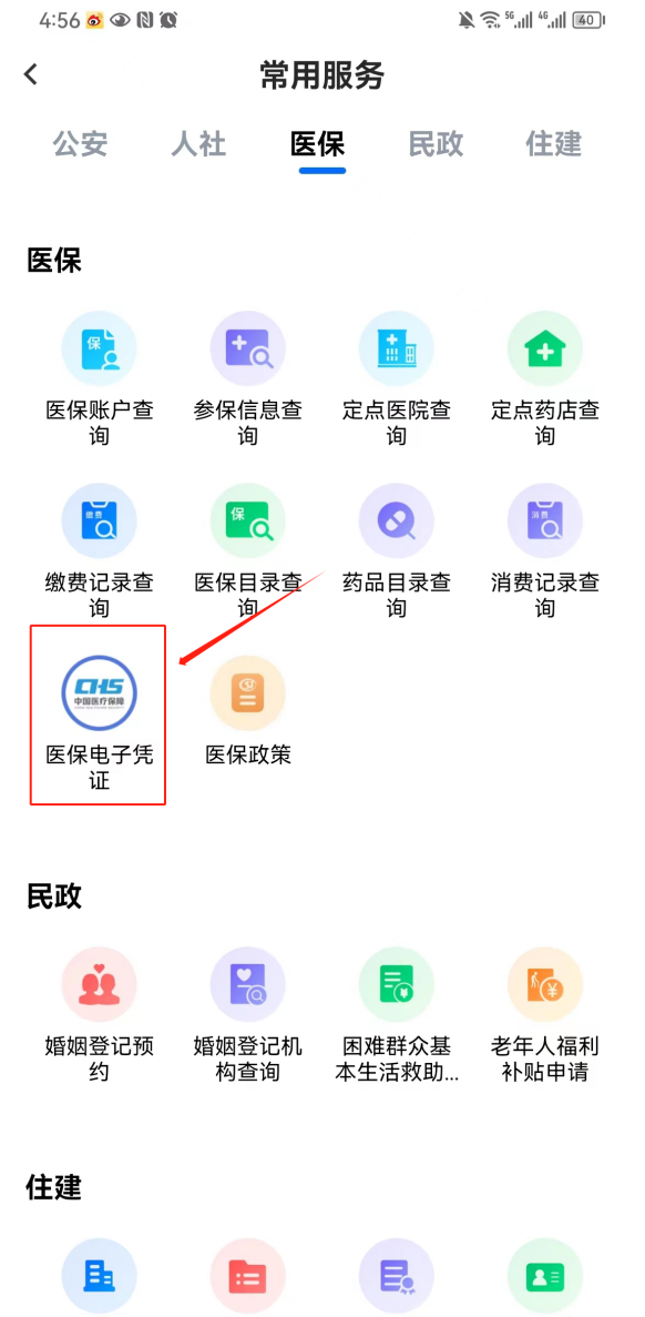 第二步:在首页功能区点击“更多”,在常用服务里选择“医保”分类选项,就可以找到“医保电子凭证”功能入口了!