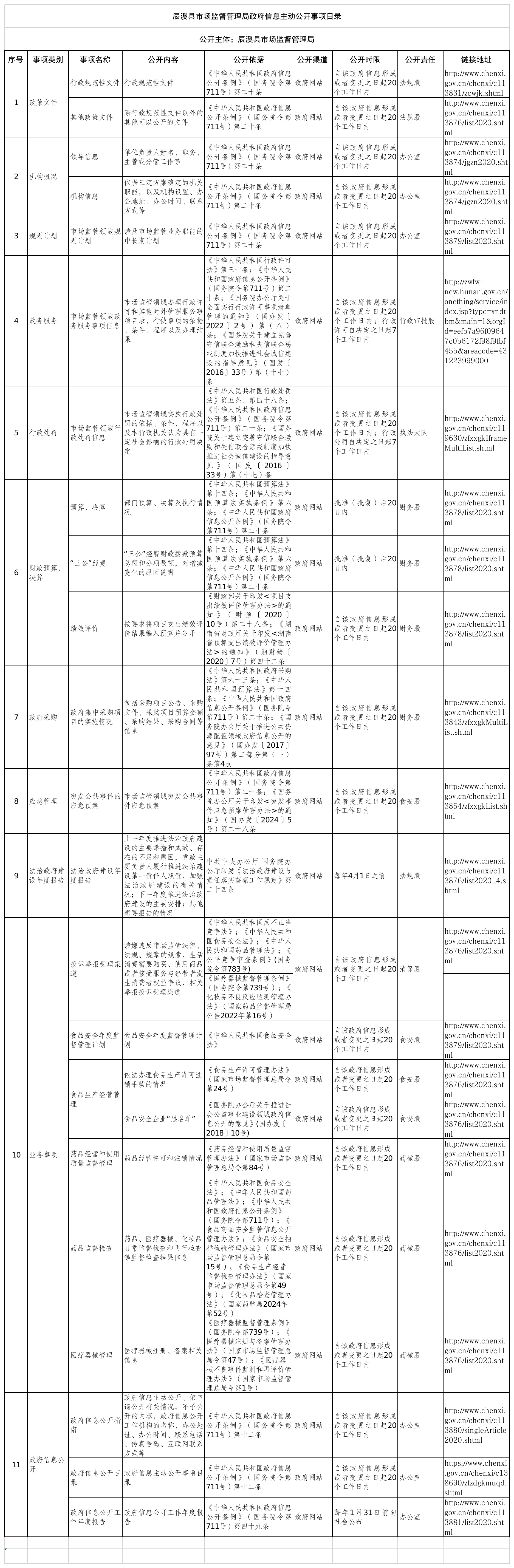辰溪县市场监督管理局政府信息主动公开事项目录