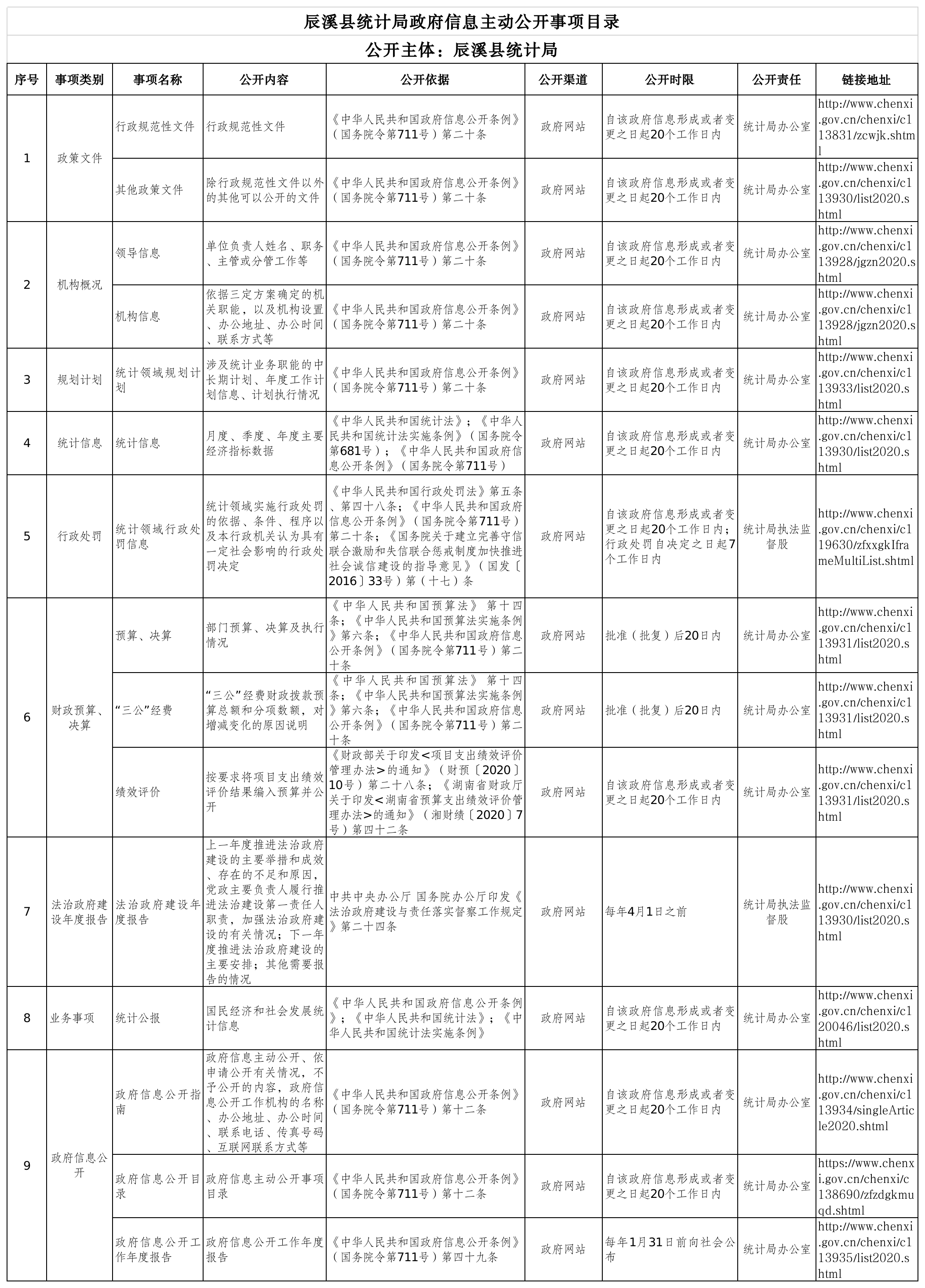 辰溪县统计局政府信息主动公开事项目录