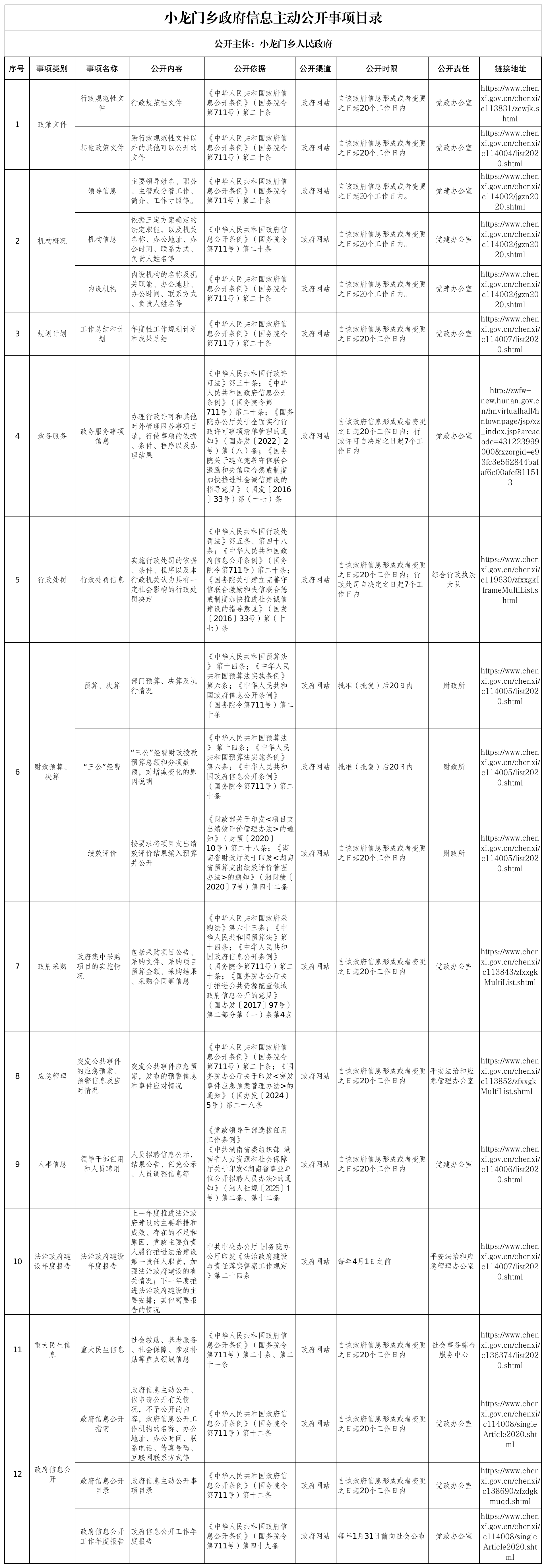 小龙门乡政府信息主动公开事项目录