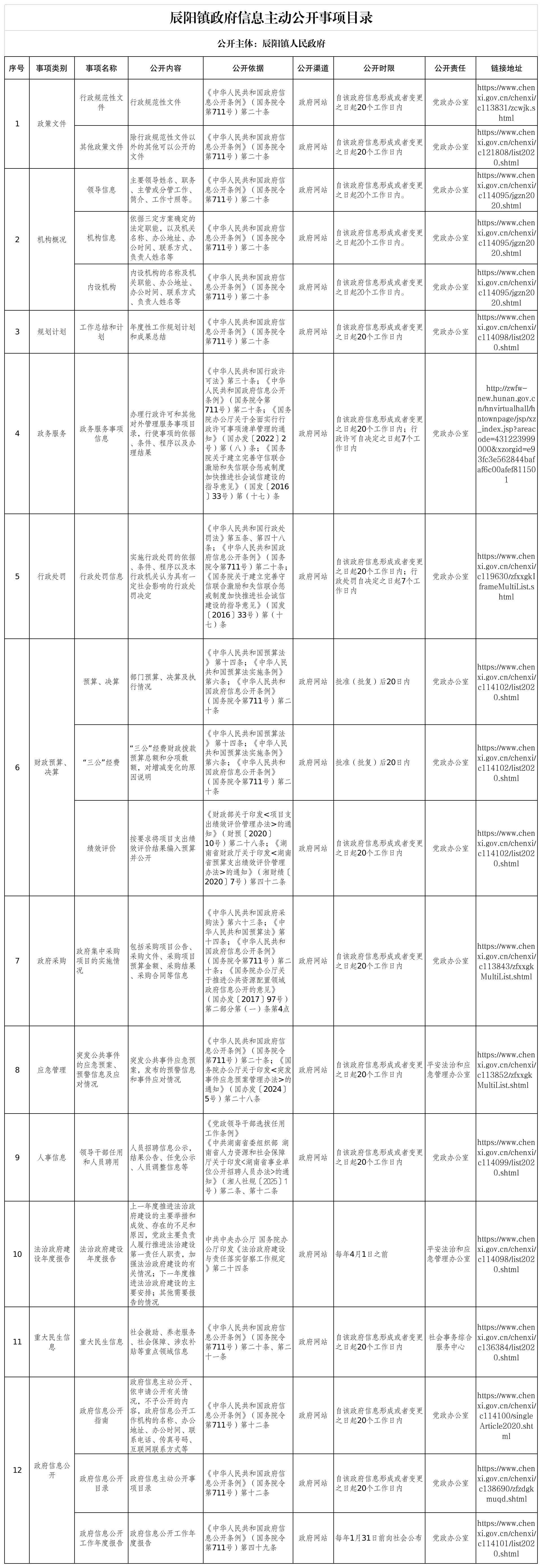 辰阳镇政府信息主动公开事项目录