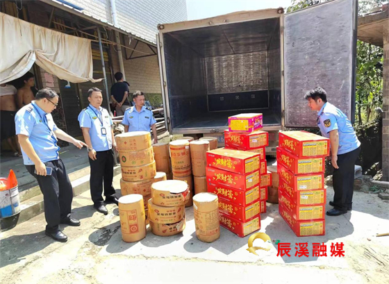 9月5日,锦滨镇执法大队在境内与潭湾镇交界处叫枣子林地方,查获一起非法储存、经营烟花鞭炮案件,当场收缴封存烟花爆竹27件、震天雷17箱,并联合县执法大队对当事人进行调查取证。