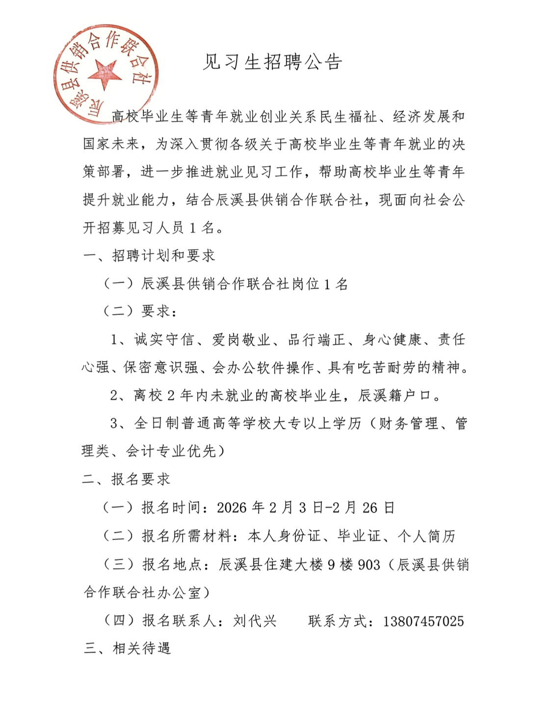 见习生招聘公告