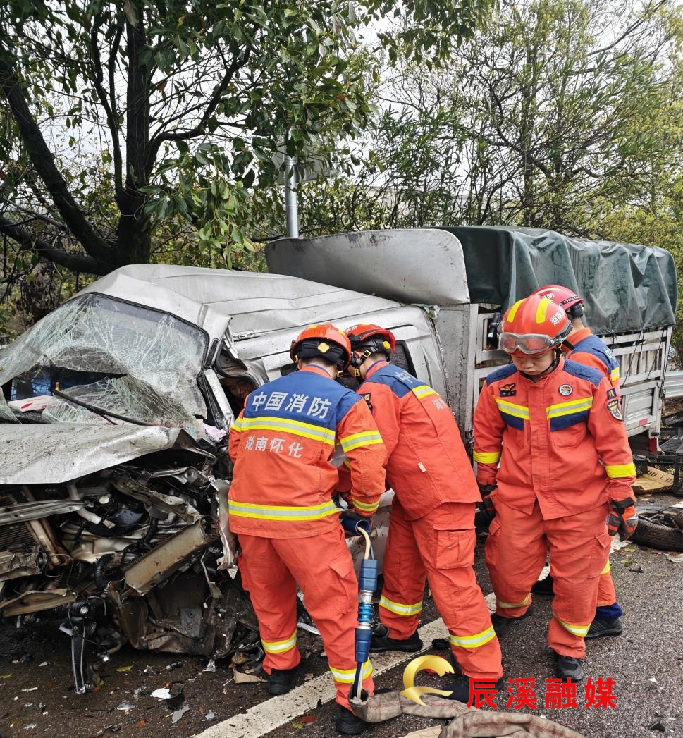 3月26日6点57分,湖南省怀化市辰溪县小龙门西站附近车道发生一起交通事故,有人员被困,情况危急。辰溪县消防救援大队东星消防救援站接到报警后,立即调派1车7名消防救援人员火速赶赴现场实施救援。