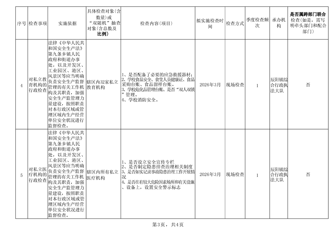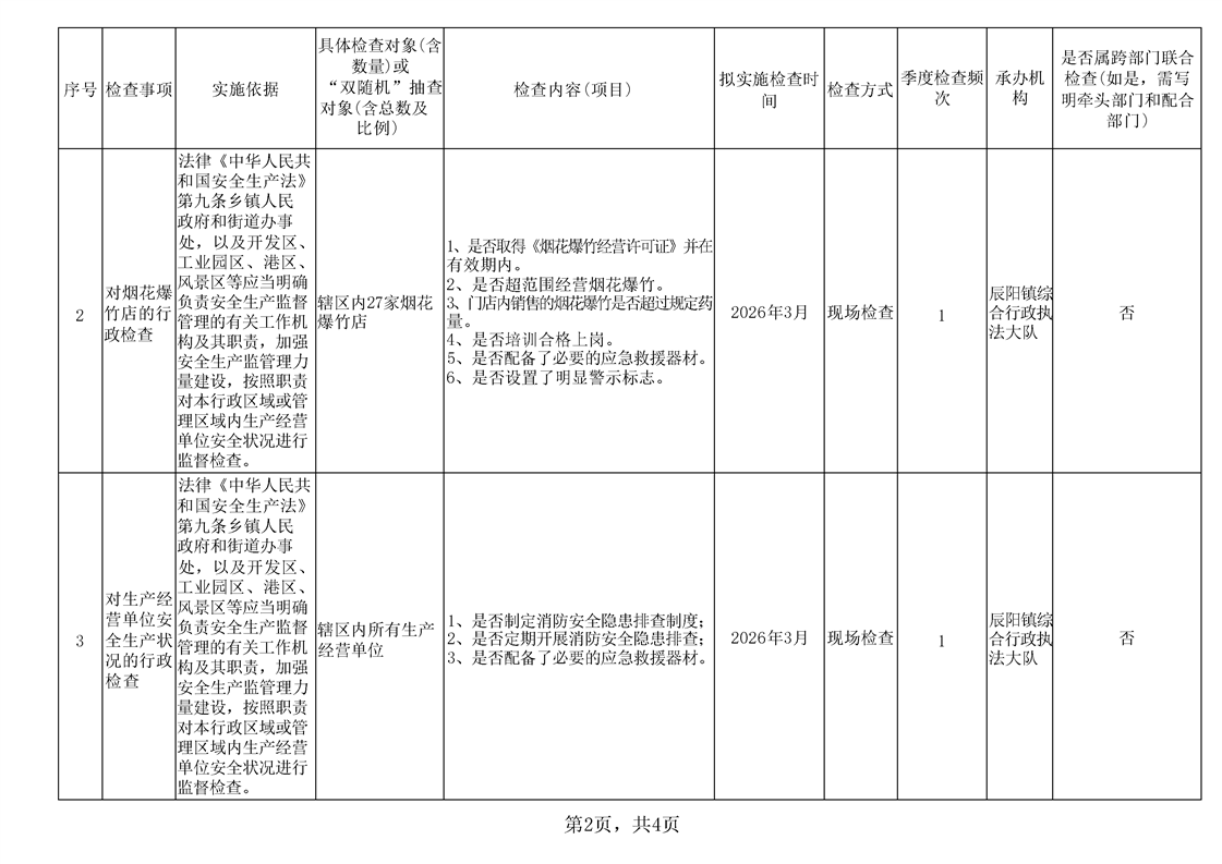 辰溪县辰阳镇2026年一季度涉企行政检查计划