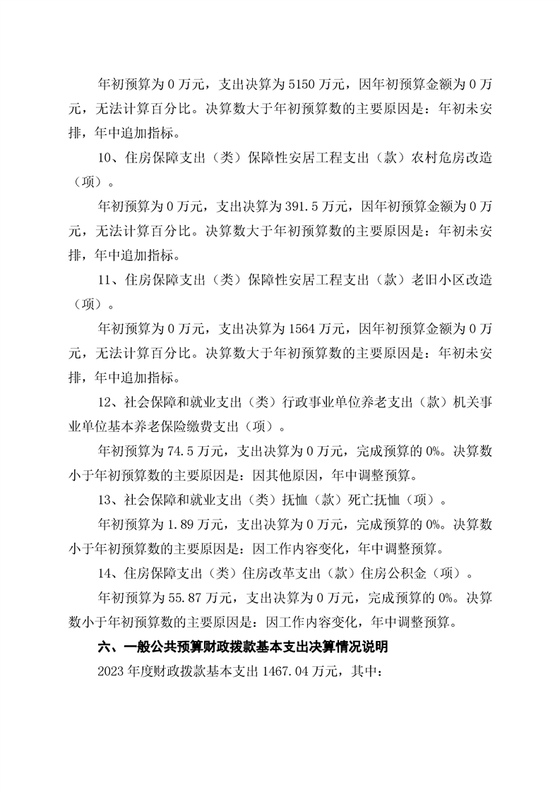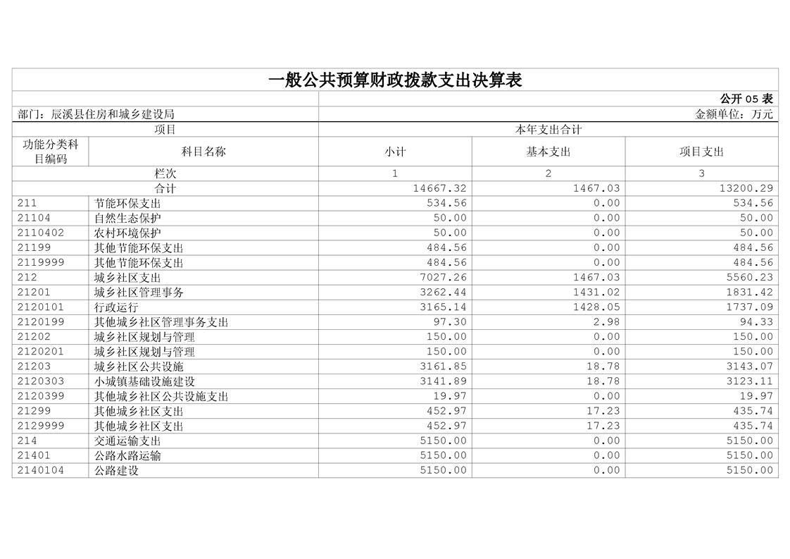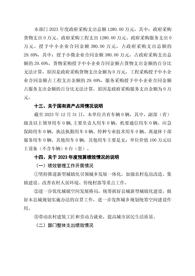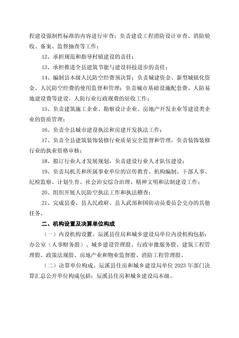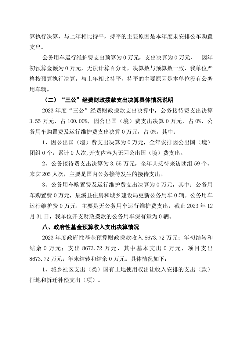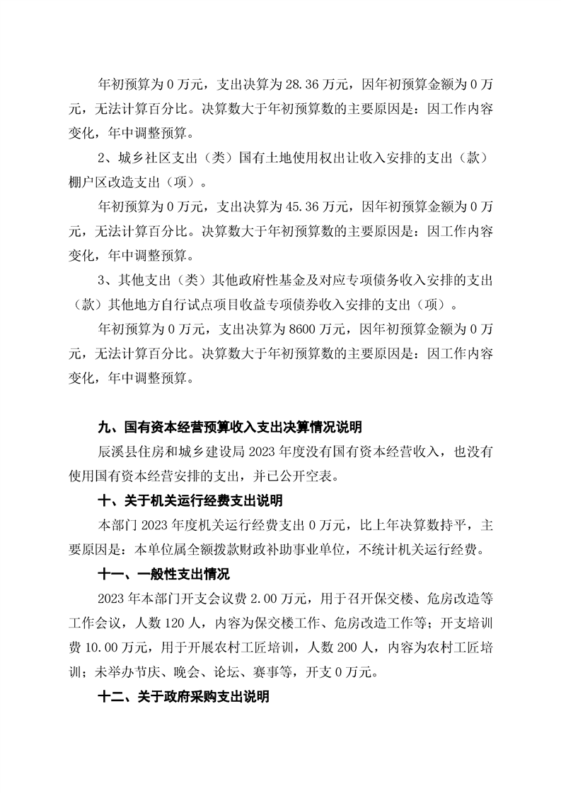 辰溪县住房和城乡建设局2023年部门决算公开说明