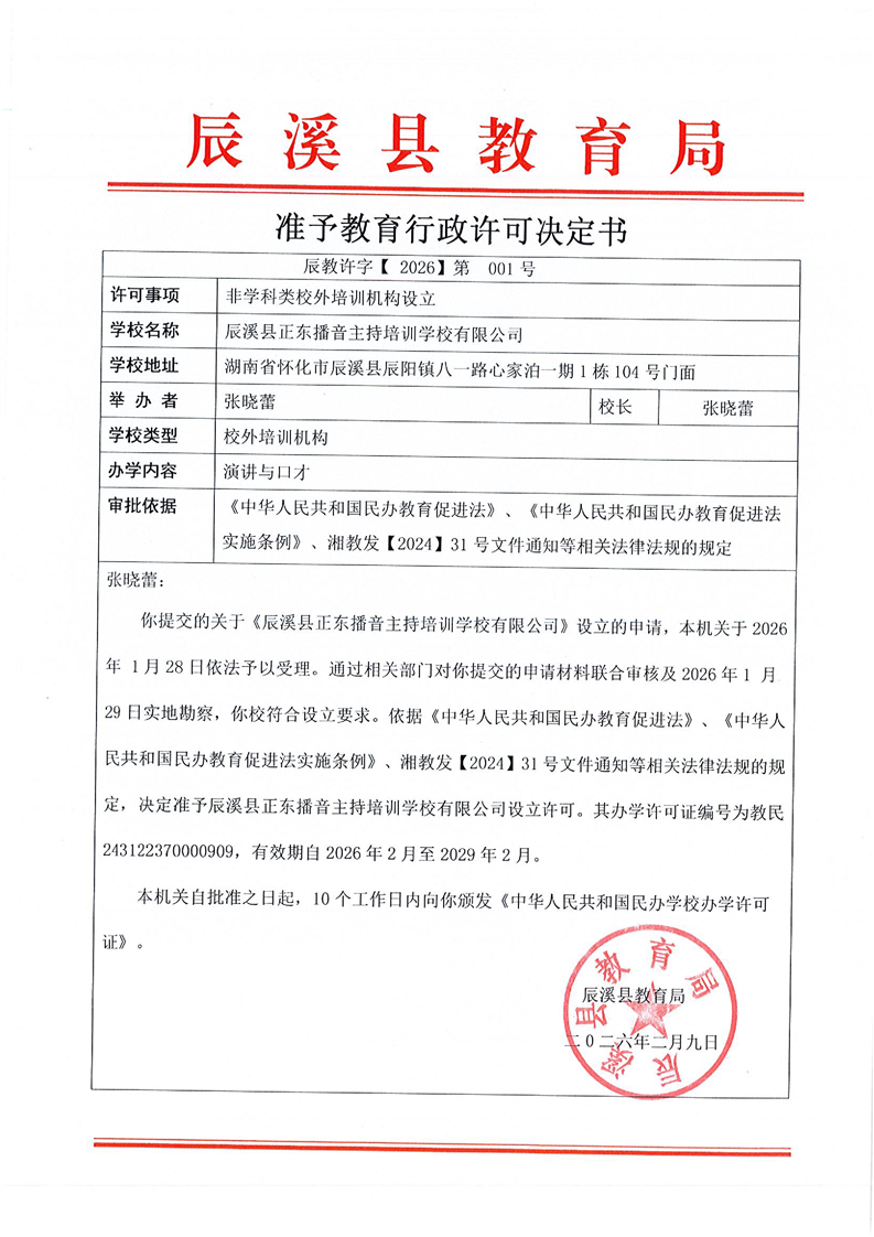 准予教育行政许可决定书
