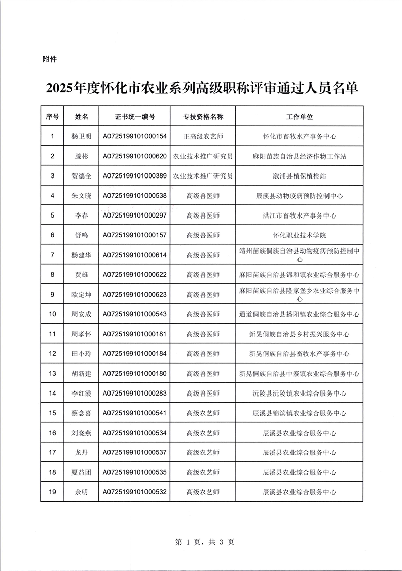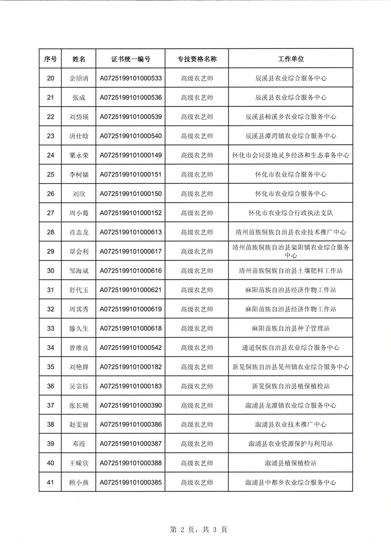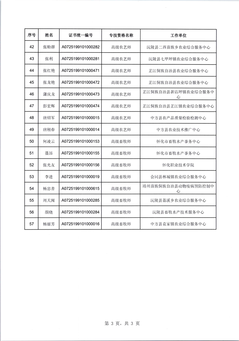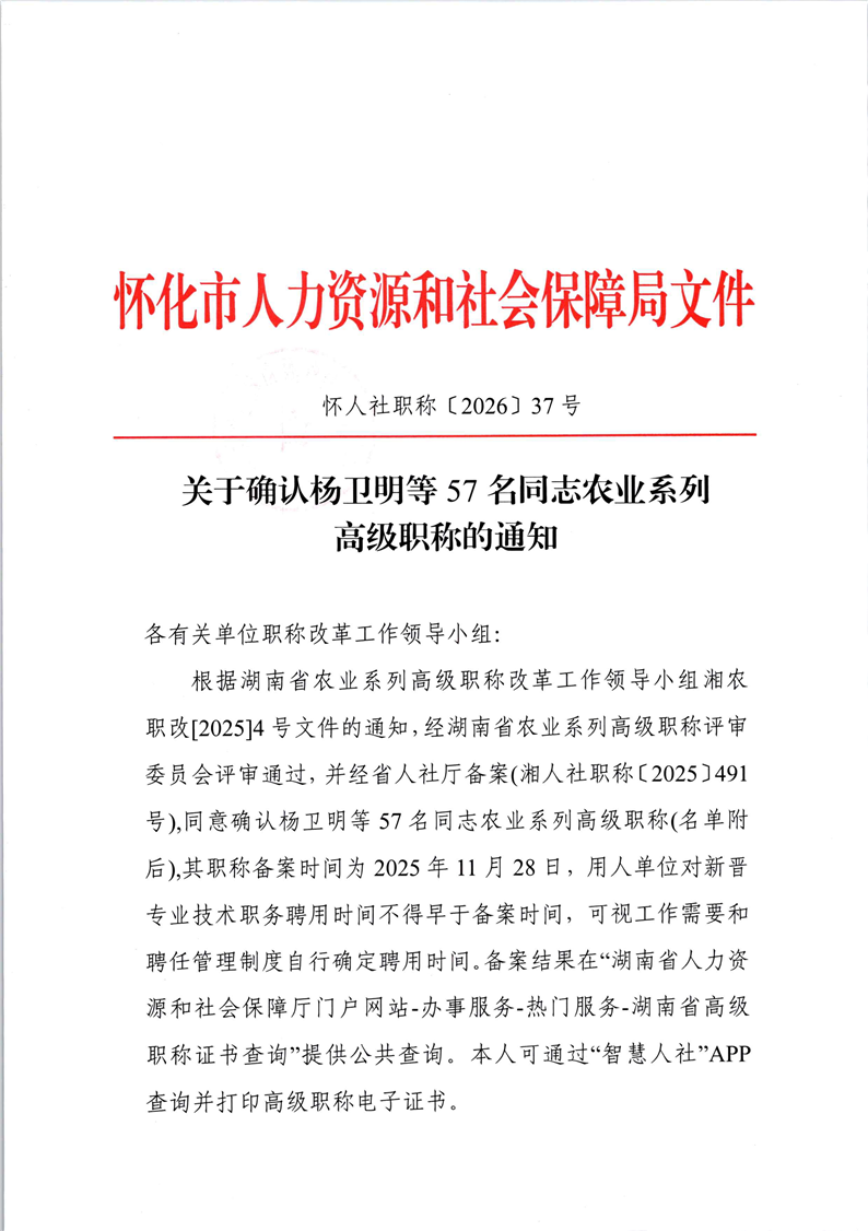 关于确认杨卫明等57名同志农业系列高级职称的通知