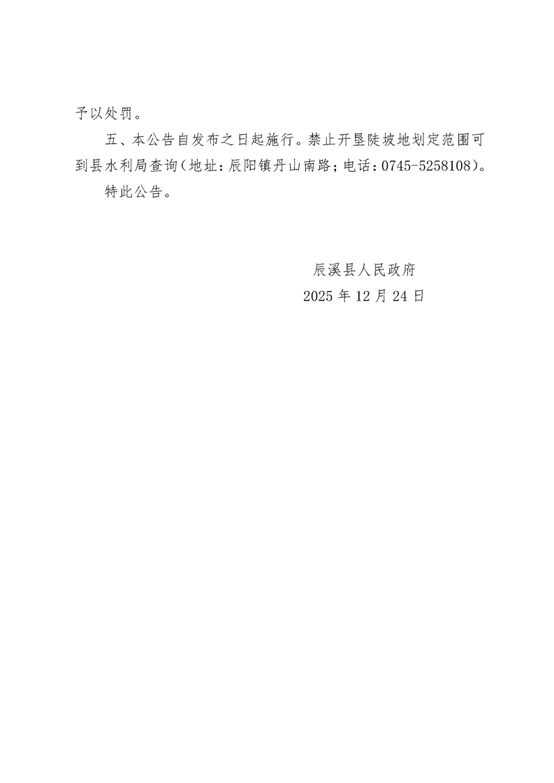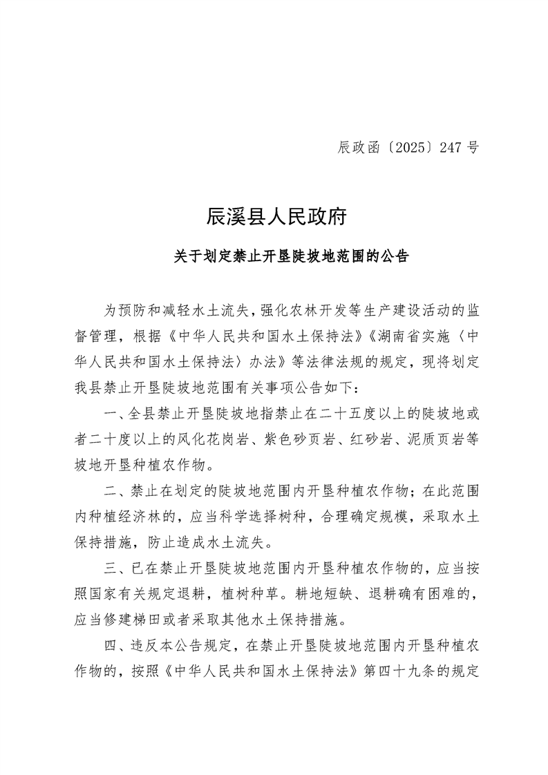 辰溪县人民政府关于划定禁止开垦陡坡地范围的公告