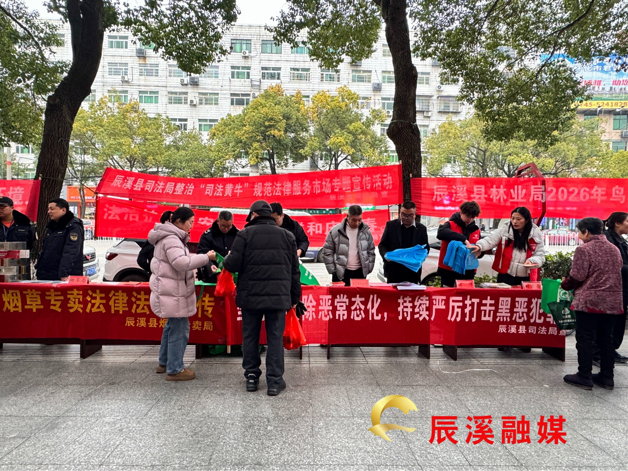 春节将至,年味渐浓。为切实提升群众法治意识,守护节日平安祥和,2月3日,辰溪县司法局联合交通局、烟草局、市生态环境局辰溪分局等“谁执法谁普法”责任单位,结合大学生“送法下乡”活动,在辰溪县辰阳镇正式启动2026年春节系列普法宣传首场活动,以法治力量为群众欢度佳节筑牢安全防线。活动现场,工作人员通过发放普法...