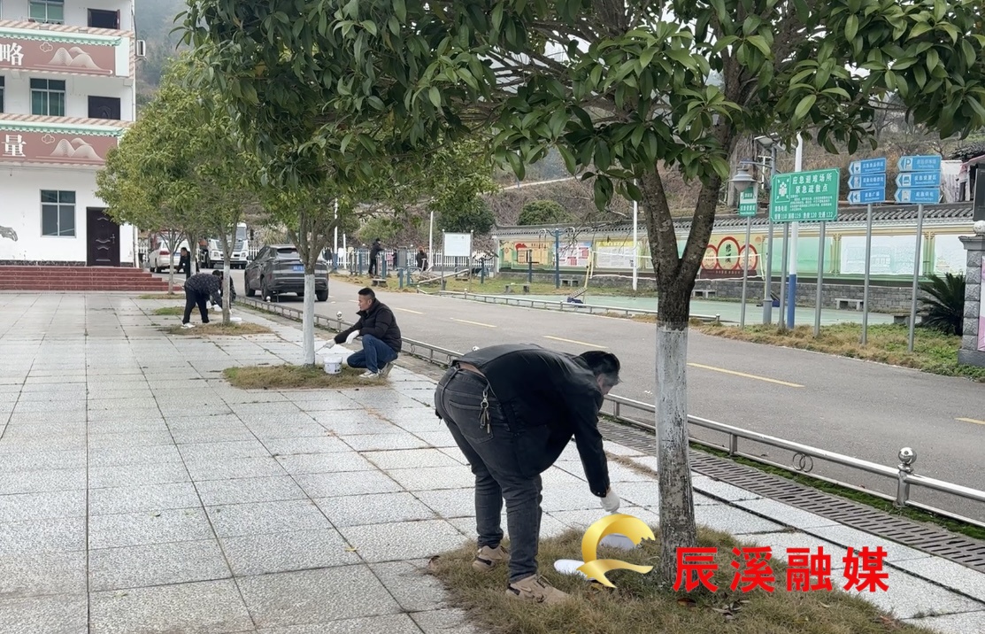 刷漆选用兼具防虫、防冻、杀菌功效的专用涂白剂,既能有效减少病虫害侵袭、提升树木越冬与抗病能力,又能让沿街树木整齐划一、清爽美观。镇政府机关率先垂范,先完成院内花坛、景观树的刷漆整理,以机关环境“换新颜”带动集镇全域“齐提升”;集镇路段重点覆盖主干道、沿河景观带、出入口等关键节点,同步清理树池杂草、修剪枯枝,做到管护与美化同步推进。整齐洁白的树干成为修溪集镇一道清新亮眼的风景线。